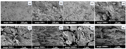 研究表明,改性膨润土能明显提高泥浆比重、粘度、胶体率、静切力和pH,同时降低泥浆失水率,保证了施工过程中泥浆护壁效果和清孔效果。改性泥浆通过掺加重晶石粉增大泥浆比重,增加CMC掺量可提高泥浆粘度、静切力,降低失水率,从而减少膨润土的使用量。SEM试验揭示了泥皮微观结构,改性泥浆的泥皮表面较粗糙,呈不规则片状结构,且整体结构更为致密,有利于增强改性泥浆护壁效果和降滤失效果。