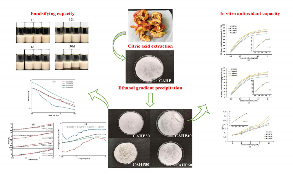 针对山楂果胶工业化提取、制备困难,该研究优化工业化提取与纯化技术,成功获得不同应用特性及分子量的四种果胶(HP30、HP40、HP50和HP60),通过结构表征、理化特性及应用特性研究,证实了HP30和HP60具有良好的乳化能力,HP40、HP50具有较强的凝胶特性,相对于商业柠檬果胶和苹果果胶,HP60具有更好的热稳定性,实现了特定应用特性果胶的定向制备,为果胶的工业生产奠定了理论基础,为食品及医药等行业提供了重要的材料。