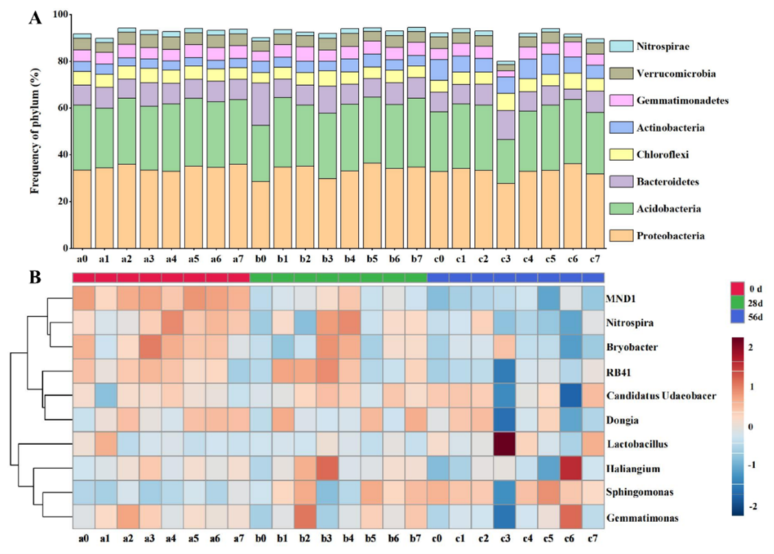 图1. 暴露于FLU和FLU+MPs后土壤微生物优势门属变化