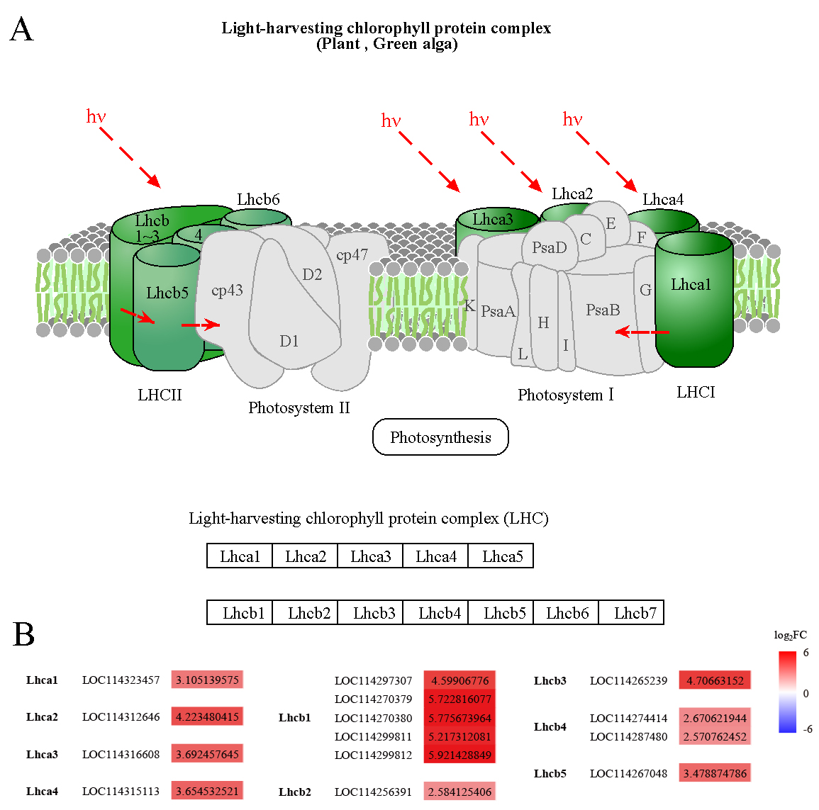 茶树由于其自身特性的限制,高频、稳定的体细胞胚系统仍未建立,也因此极大的限制了其遗传研究和育种进程。在这项研究中,采用转录组来阐明茶树体细胞胚间接发生中的基因表达调控机制。IS_PS、ES_IS和ES_PS阶段的的DEGs数量分别为109、2848和1697。富集分析表明,碳水化合物代谢过程在ES_IS阶段显著富集,在体细胞胚生成中起到关键作用,而光系统Ⅰ中光捕获的增强可以为碳水化合物提供物质基础。途径分析表明,IS_PS过程中富集的途径远少于ES_IS或ES_PS,ES_IS或ES_PS阶段DEGs的光合作用和光合作用天线蛋白途径显著富集和上调。茶树体细胞胚发生中关键的光合作用与光合作用天线蛋白途径和Lhcb1基因被发现。这些结果对阐明茶树体细胞胚胎发生的机制和茶树育种研究具有重要意义。