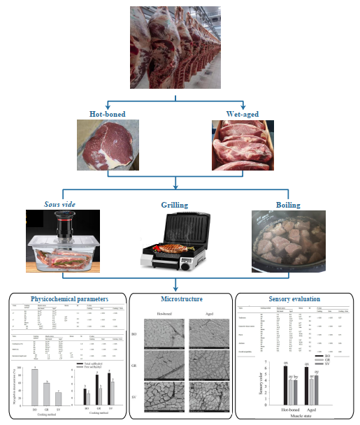 近日,食品科学与工程学院罗欣教授、梁荣蓉副教授团队在《Meat Science》在线发表了题为“Sous videcooking improved the physicochemical parameters of hot-boned bovine semimembranosus muscles”的研究论文。博士研究生许宝琛为该论文第一作者,梁荣蓉副教授和牛乐宝副教授为该论文共同通讯作者。