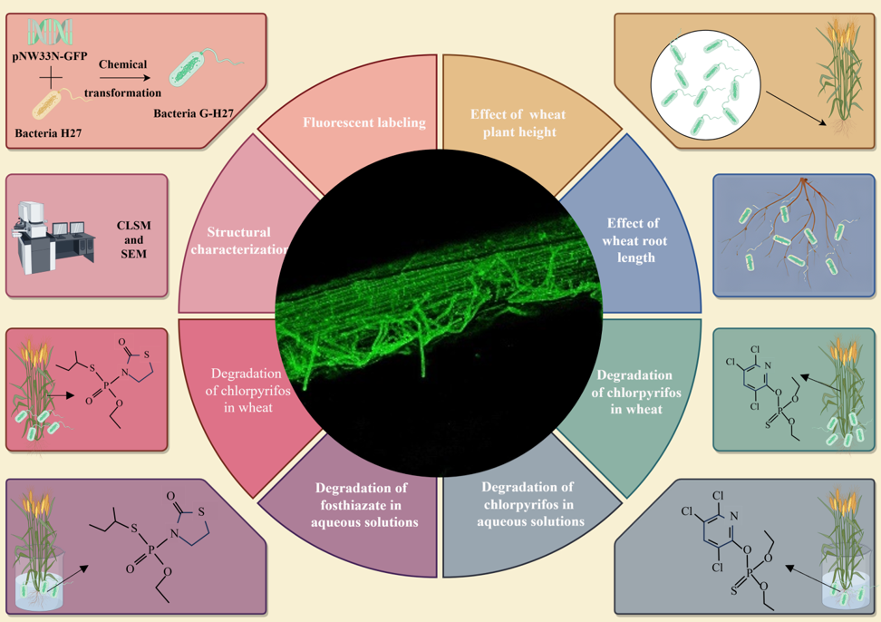 近日,资源与环境学院王金花教授课题组在《Science of the Total Environment》发表了题为“Rhizosphere bacteria G-H27 significantly promoted the degradation of chlorpyrifos and fosthiazate”的研究论文。硕士研究生张绪志为该论文的第一作者,王金花教授为该论文的通讯作者。