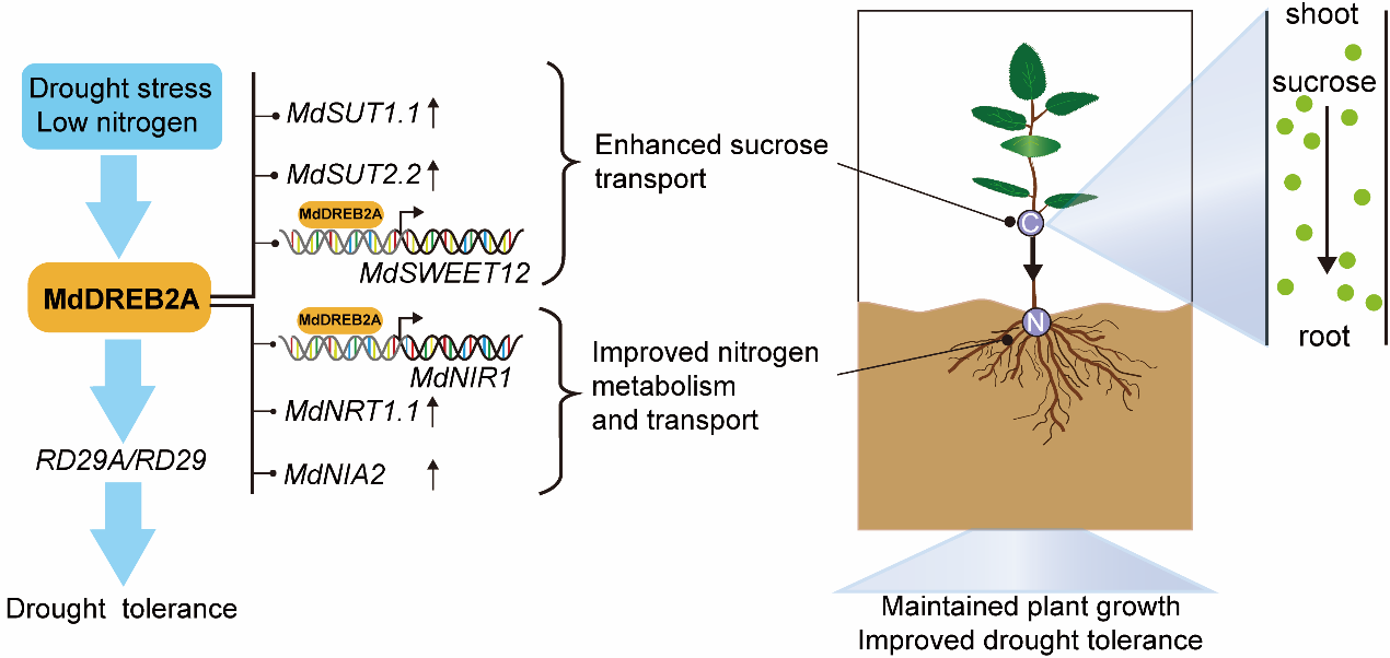 园艺科学与工程学院王小非教授团队揭示AP2/ERF转录因子MdDREB2A调控干旱胁迫下的碳氮营养平衡的机制