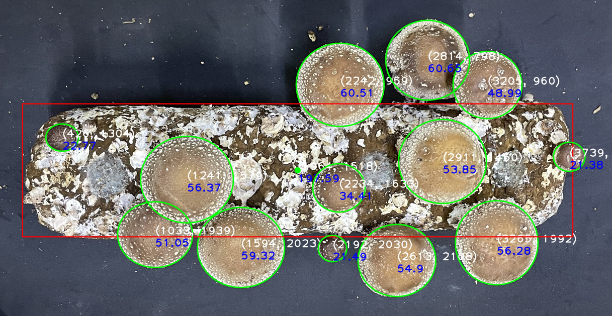 食用菌生产是棉秆、秸秆等农林废弃物循环利用的重要转化渠道,是农业可持续发展的重要模式。香菇是我国栽培最广泛、产量最多、消费最多的食用菌之一,具有很高营养、药用和保健价值,被誉为“菇中皇后”。我国香菇产量年产量高达1200万吨,占世界总产量的90%以上,产业规模上千亿,在国际上拥有绝对话语权。香菇工厂化生产是产业高质量规模化发展的必然趋势。然而,目前香菇采摘环节仍严重依赖大量人工、费时费力、成本高、作业环境高温高湿不友好,成为香菇工厂化规模化生产的瓶颈环节;另一方面,菌棒栽培的香菇生长密集,采摘作业空间极其有限,且需短时间内完成采摘,机械化采收难度极大,成为香菇产业规模化发展的卡脖子技术。在香菇菌棒栽培的工厂化生产场景中,机器人选择性采收菌棒是一种很有前景的方法,它需要通过检测蘑菇数量、测量蘑菇大小和圆度以及计算合格蘑菇比率来准确评估目标菌棒的生长状况。由于菌棒上香菇的随机分布、高度差异、大小和形状不一以及菌盖倾斜,准确、实时和经济高效的评估具有挑战性。