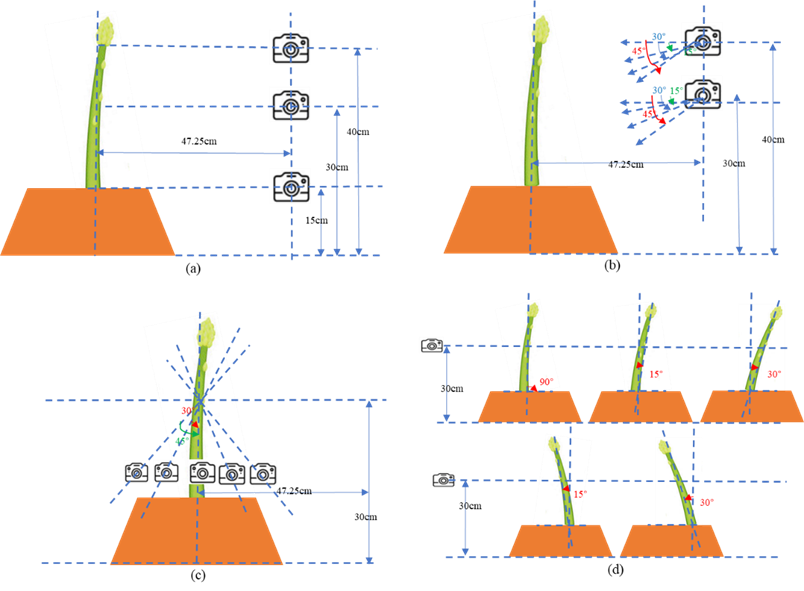 芦笋是一种多年生宿根性草本植物,在20世纪80—90年代中国已成为世界上栽培面积最大的芦笋生产国和产品出口国,面临着收获绿芦笋的挑战。芦笋生长密集,同一根系生长出来的芦笋嫩芽生长方向、生长成熟不一致,具有快速、零星生长的特点。目前全国几乎所有芦笋采摘等繁重的体力劳动仍由农民人工完成,绿芦笋的采收需要根据其长度仔细选择成熟的茎,另一方面,我国芦笋一般生长在山脊上,需要用芦笋刀在地表以下1至2cm的深度人工切割,因此这是一项劳动密集型和耗时的工作。实现田间绿芦笋智能选择性采收的关键在于采收适应度(长度、直径等)的判别和绿芦笋底土切点的精确定位。