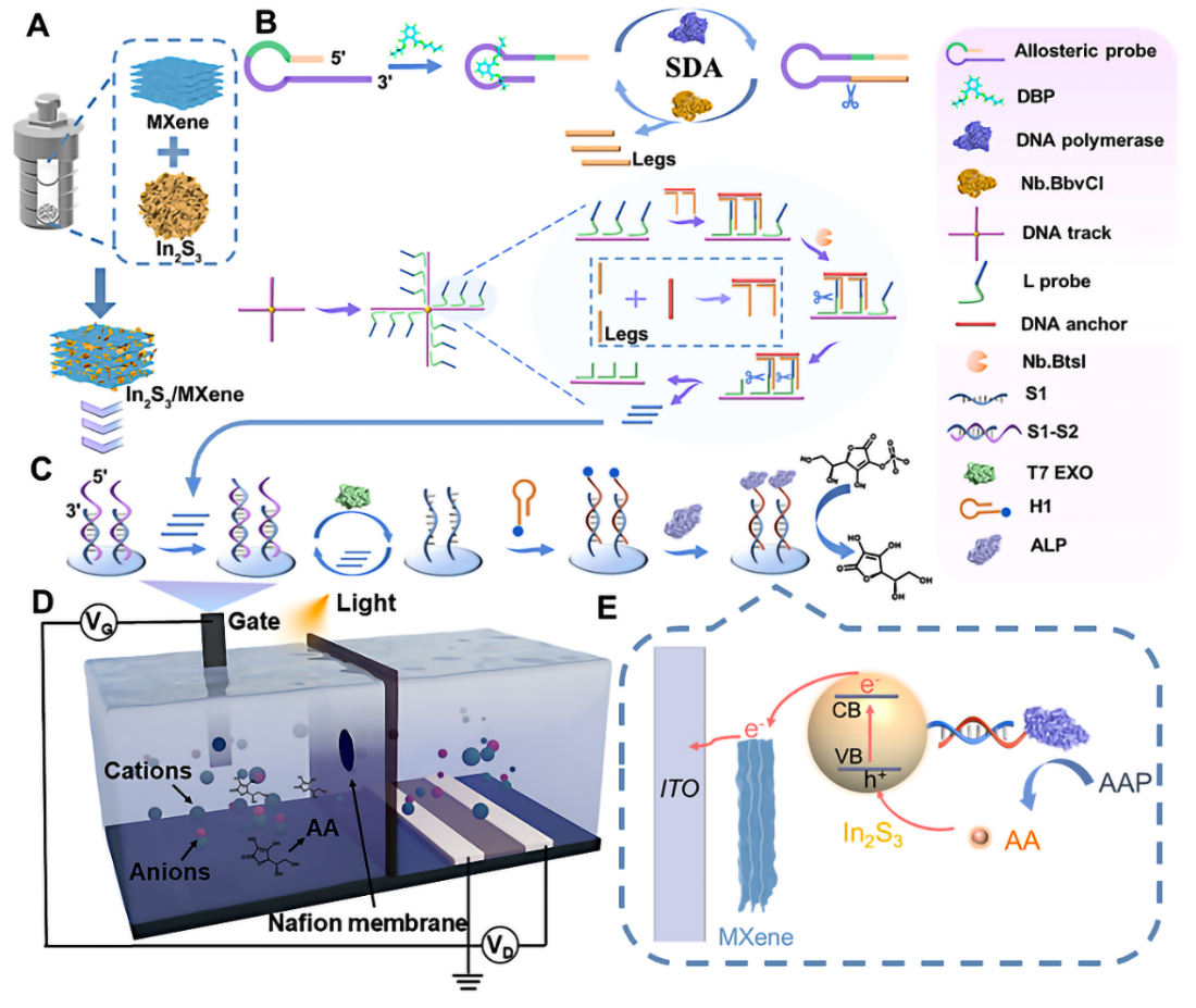 近日,化学与材料科学学院殷焕顺教授团队周云雷副教授在《Advanced Functional Materials》上发表了题为“In2S3/MXene-Gated Organic Photoelectrochemical Transistor with Target-Induced Dipedal DNA WalkerModulation for DBP Biosensing”的研究论文。硕士研究生张浩伟为该论文的第一作者,周云雷副教授和殷焕顺教授为该文的通讯作者,我校为唯一通讯单位。