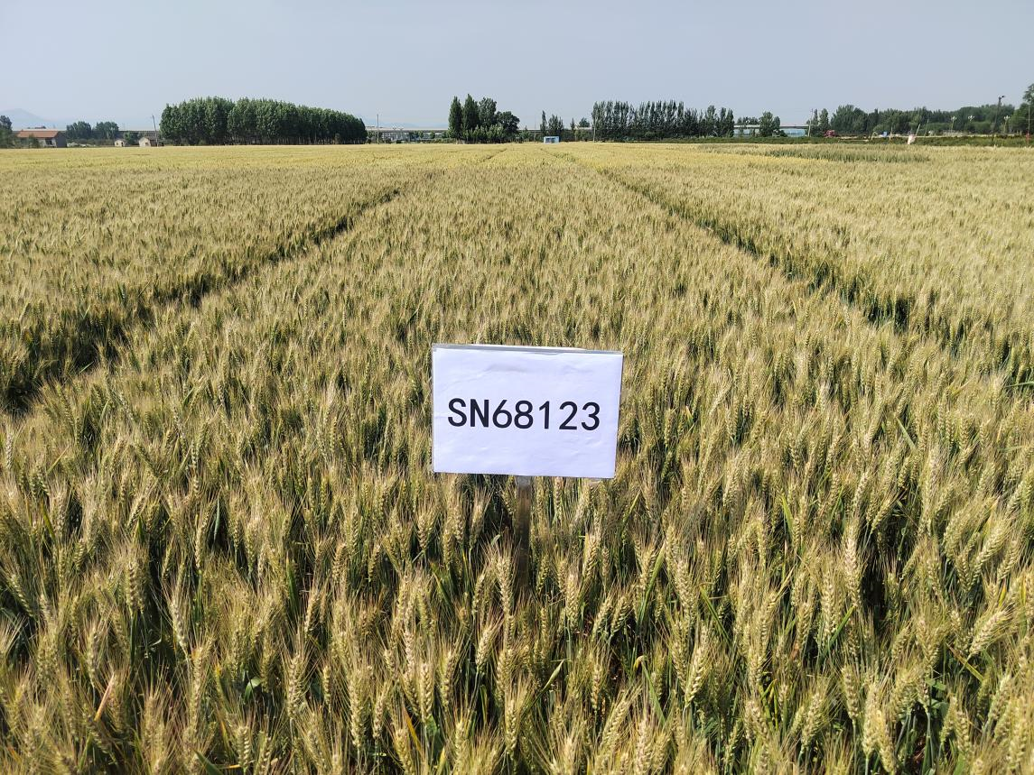山农紫麦2号(原代号SN68123),审定编号:鲁审麦20246030。由杨猛副教授团队选育,强冬性,幼苗半匍匐,株型半紧凑,叶色深绿,叶片上举,熟相好。生育期山农紫麦1号晚2天;株高85.4厘米,抗倒性较好,亩最大分蘖73.0万,亩有效穗33.1万,分蘖成穗率46.1%;穗粒数44.3粒,千粒重45.5克,容重783.5克/升;穗长方形,长芒、白壳,紫粒、籽粒硬质。越冬抗寒性好。慢锈条锈病、叶锈病,中感纹枯病,高感白粉病、赤霉病。籽粒蛋白质含量14.58-14.65%,湿面筋 34.9-39.2%,沉淀值24-25m1,吸水率61.4-62.2m1/100g,稳定时间1.9-2.3min,面粉白度70.8-72.0。2023-2024年特殊类型自主生产试验,平均亩产589.1公斤,比对照山农紫麦1号增产5.3%。