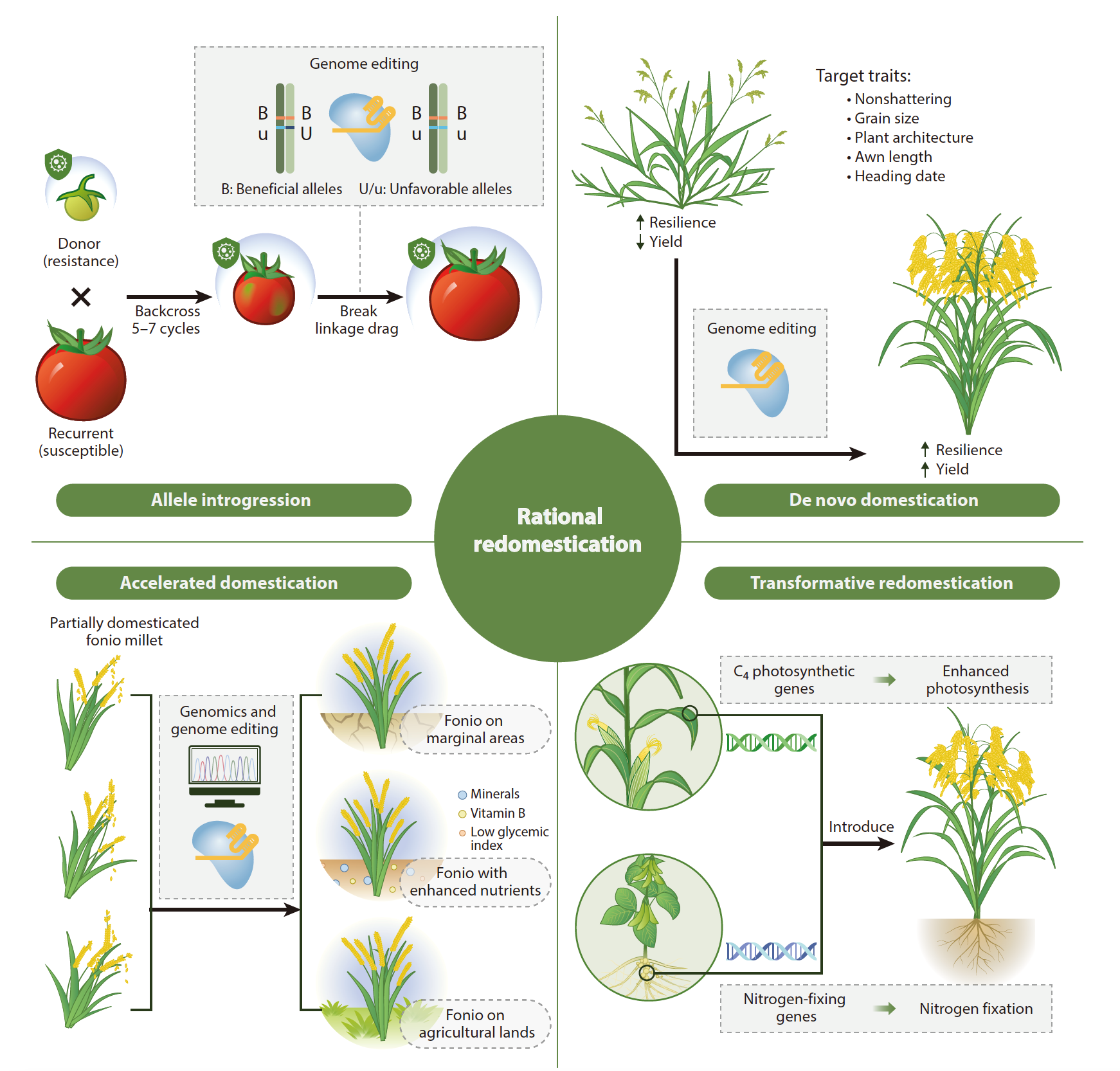 -遗传学和生物技术的进步正在推动作物育种向理性再驯化的范式转变,这一策略以目标导向和知识驱动为核心,助力作物改良。
