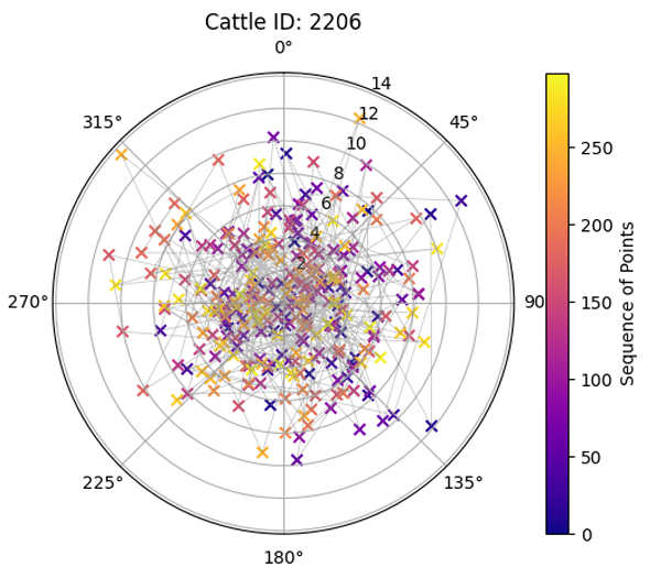 极坐标变换和高精度坐标点重现技术的结合,为奶牛发情检测提供了一种全新的多学科方法,不仅提高了检测的准确性,还能够捕捉奶牛在发情期间的细微动作变化。这一发现不仅加深对奶牛行为模式的理解,也为未来的精准畜牧业管理提供了新的技术路径。