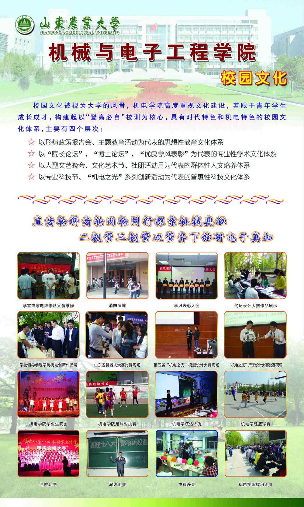 欢迎各位考生报考山东农业大学机械与电子工程学院,我院有着悠久的办院历史,始终坚持以生为本的办学理念,致力于学生的成长成才,培养出了一批又一批高素质人才。