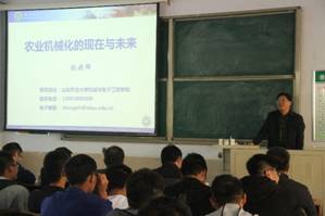 为增强学生专业认识,引导学生爱专业、爱农机,进一步拓宽学生的专业视野。10月23日,农机系党支部邀请山东省教学名师、“豪丰杯”全国首届十佳农机教师张晓辉教授为2017级、2018级农机专业学生进行了吾土吾民—“农业机械化的现状与未来”的专业导航报告会。
