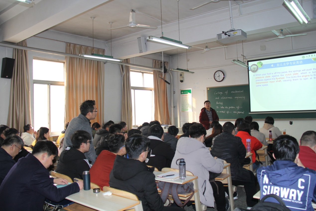 张万枝老师备课充分,课件制作图文并重,上课重点突出,注重交通运输专业英语课程特点,采取启发式、案例教学法,课上师生互动,教学效果良好。刘希山一丝不苟认真听课,注意观察同学们听课状况,仔细做着听课记录。下课后,刘希山与张万枝老师交流听课体会,充分肯定张老师备课认真、上课用心、板书规范等优点,对同学们上课前收缴手机集中保存、认真听课、认真做笔记、学习态度端正等方面给予充分肯定。