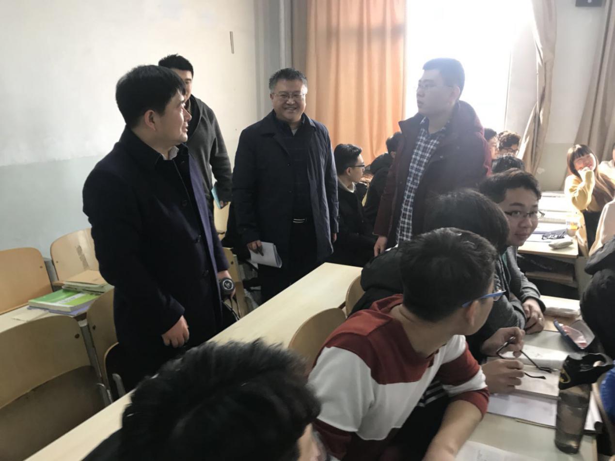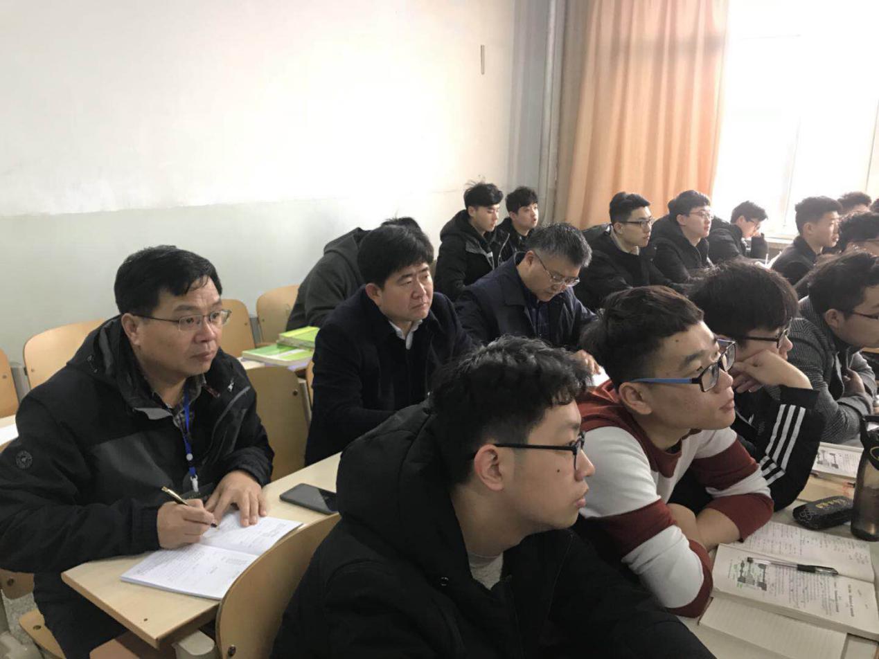 上午8点55分,刘希山等院领导在北校区5号楼S-209,听取了邹亮亮老师为车辆16-1、16-2开设的《汽车事故工程》课。(张洪进供稿)