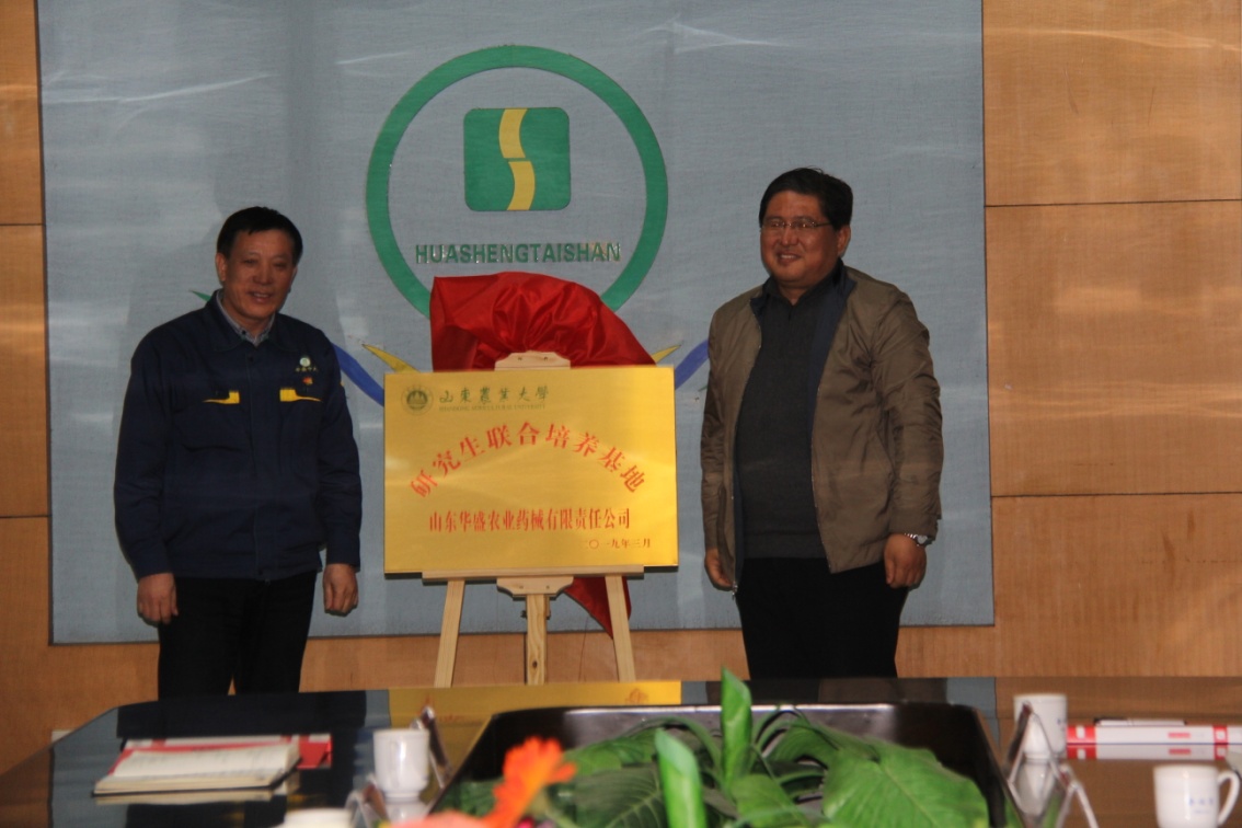 2019年3月14日,山东农业大学研究生联合培养基地、山东农业大学教学科研实践育人基地揭牌仪式在山东华盛农业药械有限责任公司举行。山东农业大学党委常委、副校长吴衍涛、教务处处长谢胜利、机电学院党委书记刘希山、山东华盛农业药械有限责任公司董事长张士志、总工程师崔景国等出席活动。