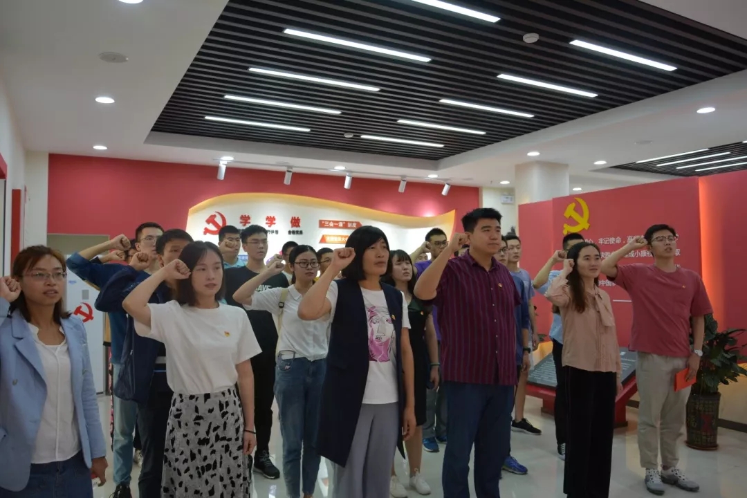 活动伊始,在大官庄新村党群服务中心解说员的带领下参观中共党史图片展、大官庄村乡村振兴展、民俗物品实物及大官庄村农业扶贫大棚。大家仔细聆听了大官庄村党支部负责人关于大官庄村的情况介绍,观看了大官庄旧村改造前后变化的短片。大官庄村致力于自身解决贫困问题,培育新型农业经营主体,全面推进农业现代化,形成工业园区、农业采摘观光园区、商业街区三大发展模块的新型农村经济模式得到了大家的交口称赞。随后,全体党员面对党旗进行宣誓,重温了入党誓词。铿锵的誓言,表达的是决心,承载的责任,坚定的是信念。