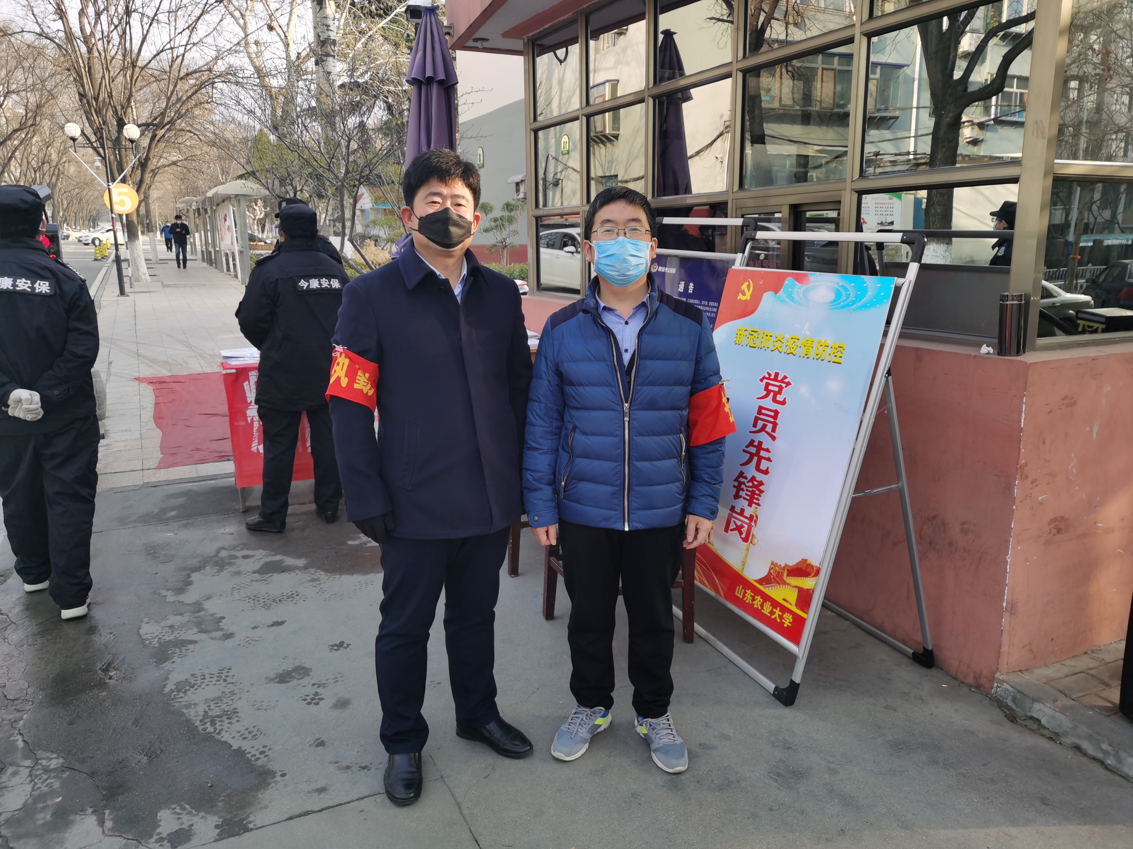3月11日,学院8位党员分别在北、南、东三个校区参与党员先锋岗执勤、防控检查、宣传相关政策等工作。早晨7:10分,张军老师就早早来到北校区家属院东门参与执勤工作,协助物业的同志为进出家属院的人员测量体温、检查通行证、督促扫描出入通行二维码,忙得不亦乐乎;参与南校区执勤工作的郭晶老师,虽然家里还有两个孩子需要照顾,依然积极报名参与党员先锋岗执勤;任龙龙老师在认真做好执勤的同时,还利用执勤间隙做好学生线上学习指导。学院党政领导也以一名普通党员的身份,加入到党员先锋岗队伍中,为疫情防控做出一名党员应尽的责任。