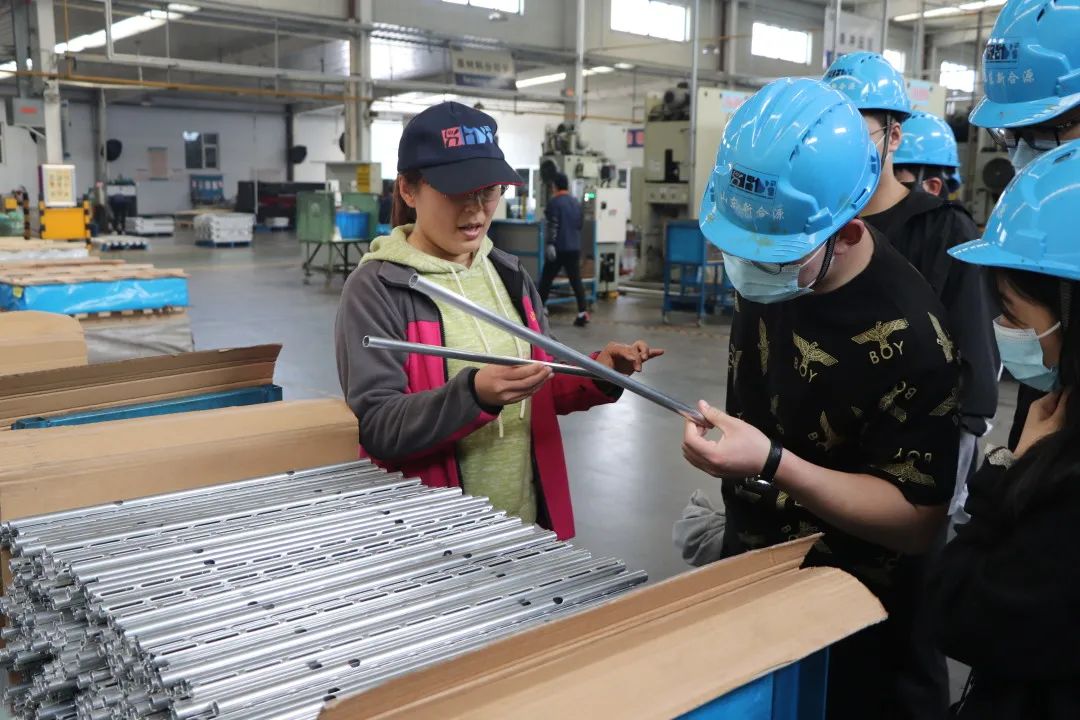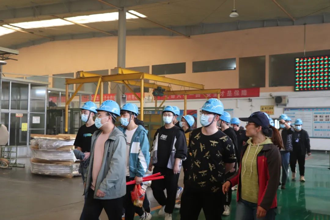 在公司员工的带领下,同学们依次参观了制管车间、冲压车间,企业人员清晰、透彻的讲解了技术研发过程及产品性能和用途。