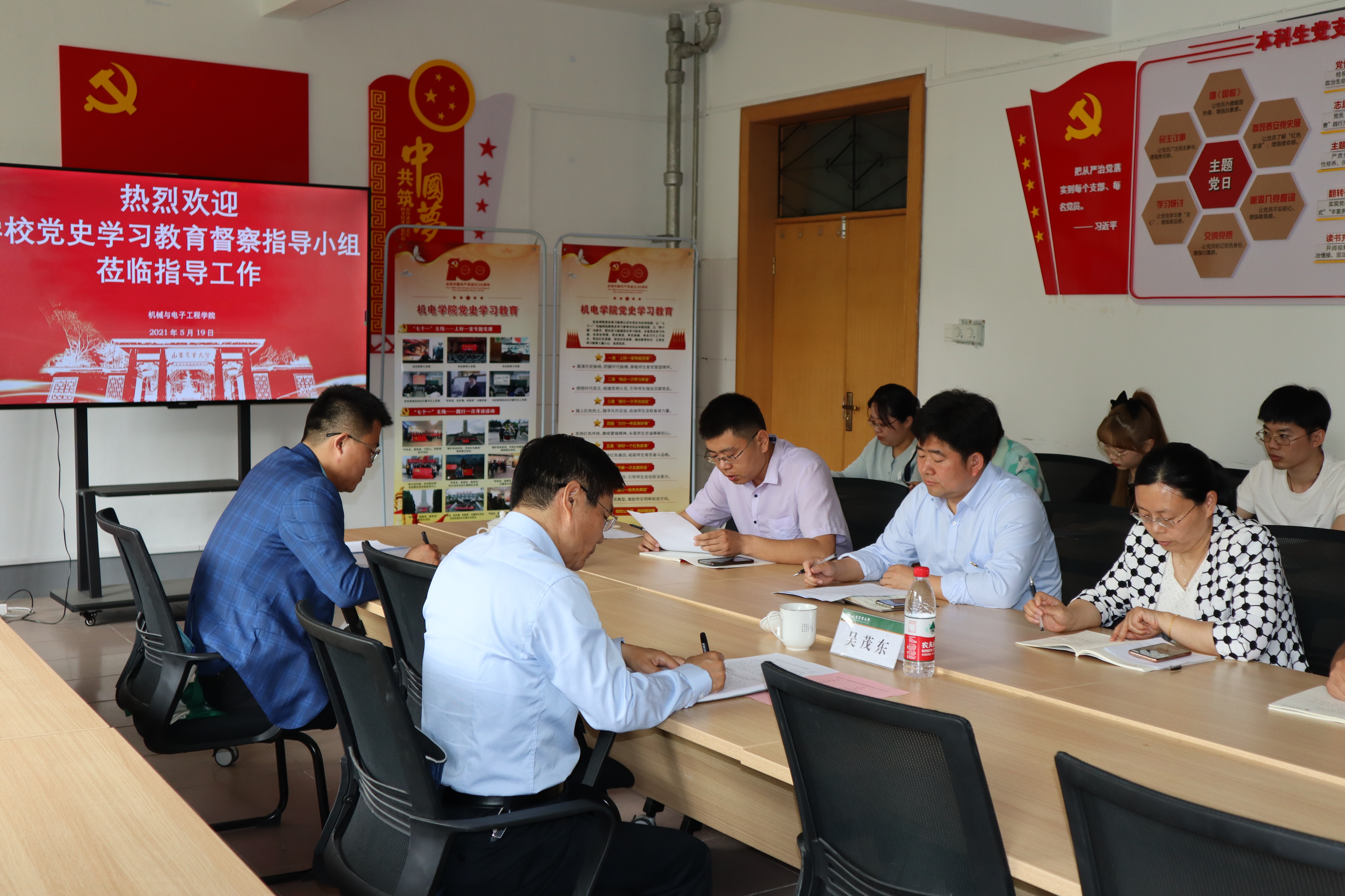 5月19日,学校党史学习教育督察指导小组吴茂东、王志维来我院督察指导党史学习教育开展情况,学院党委书记主持会议,教工党员代表、学生党员代表参加座谈会。