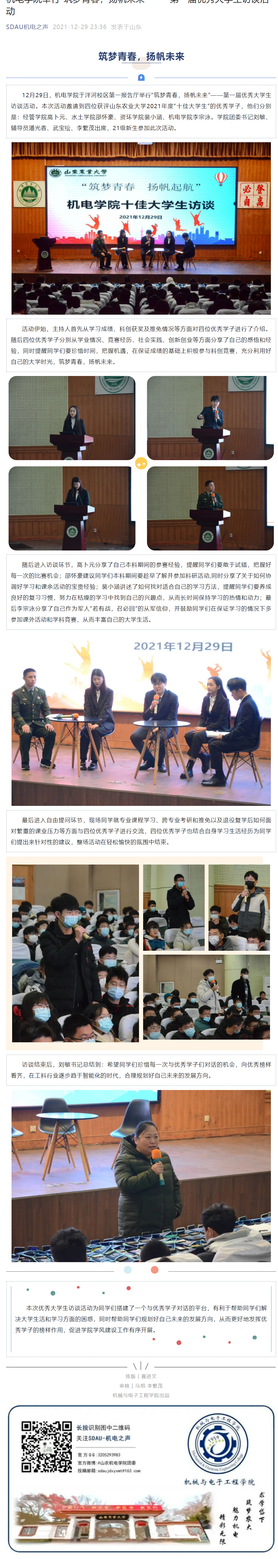 机电学院举行“筑梦青春,扬帆未来” ——第一届优秀大学生访谈活动