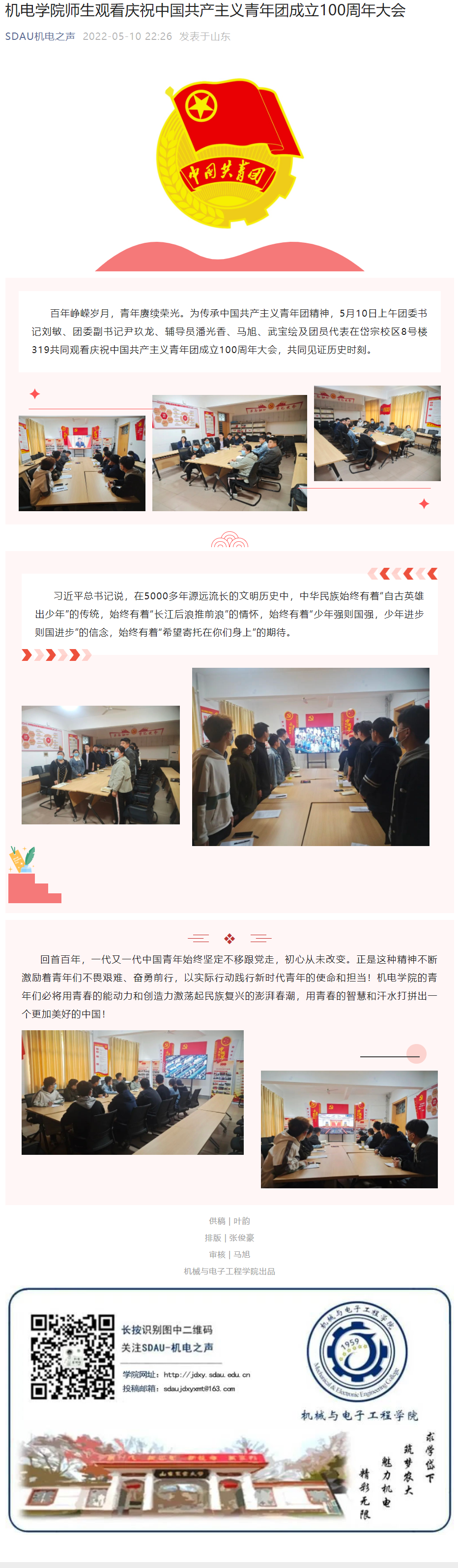 机电学院师生观看庆祝中国共产主义青年团成立100周年大会