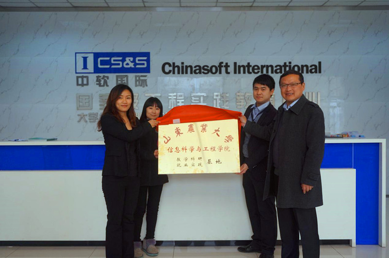 2015年12月1日上午,山东农业大学信息学院与北京中软国际教育科技有限公司教学科研就业实践基地揭牌仪式在京举行。山东农业大学信息学院党委书记李广松、党委副书记李华、副院长王志军、中软国际教育集团北京ETC总经理罗娅、校企合作大区经理敖漫、校企合作区域经理刘术奇等出席了揭牌仪式。
