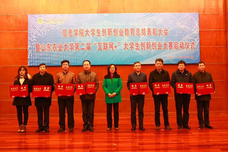 1月9日,信息学院召开了大学生创新创业工作总结表彰大会,同时启动山东农业大学第二届“互联网+”大学生创新创业大赛。副校长朱莉参加此次活动并为学院聘请的19名创业导师颁发了聘书。