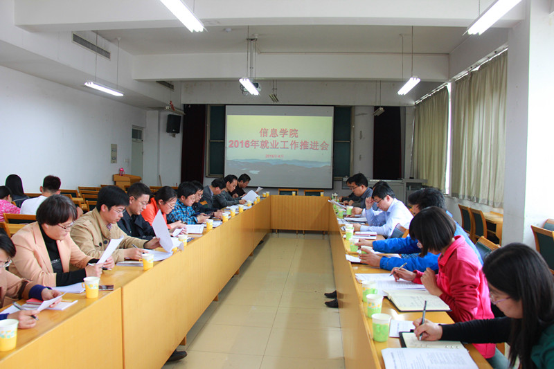 4月8日下午,信息学院就业工作推进会在文理大楼804召开。学院领导班子成员、各系主任、专业主任、就业指导老师及团委老师参加会议。