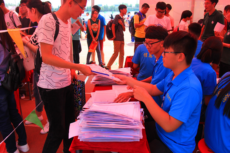 所有迎新志愿者认真、热情为每一位新生办理报到手续