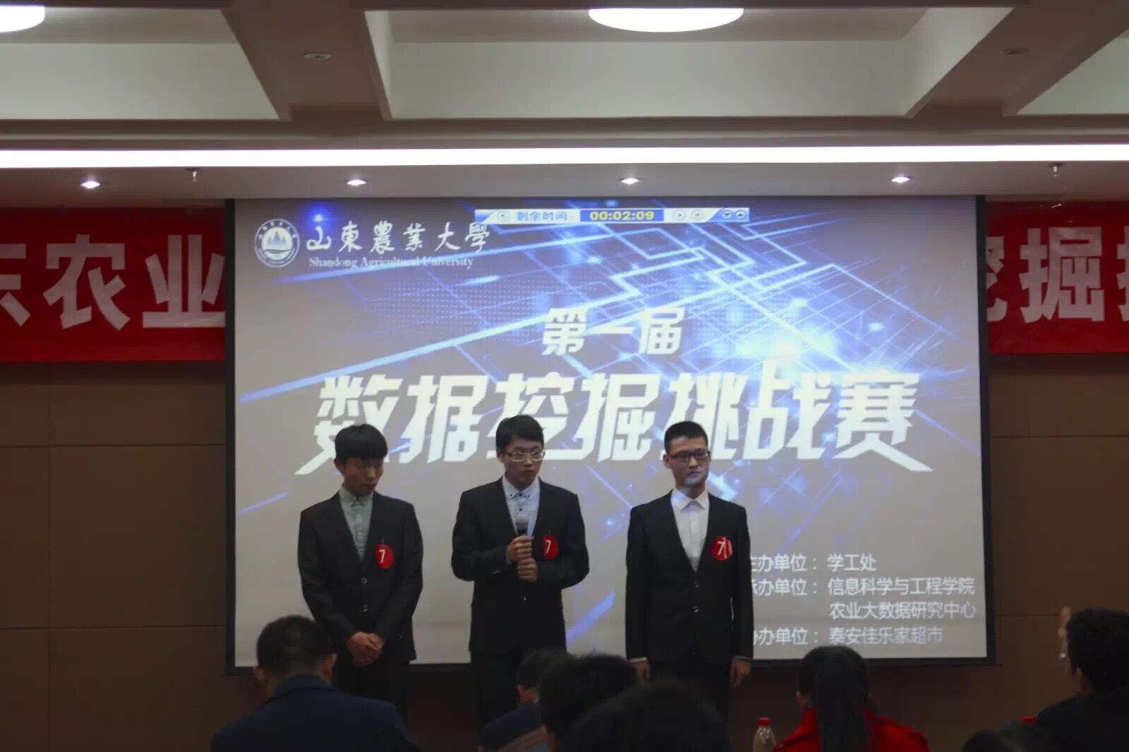 12月24日晚,由学工处主办,信息科学与工程学院及农业大数据研究中心承办的山东农业大学第一届数据挖掘挑战赛决赛在北校区学实楼报告厅圆满落下帷幕。学工处处长王群、学院负责人出席了此次活动。