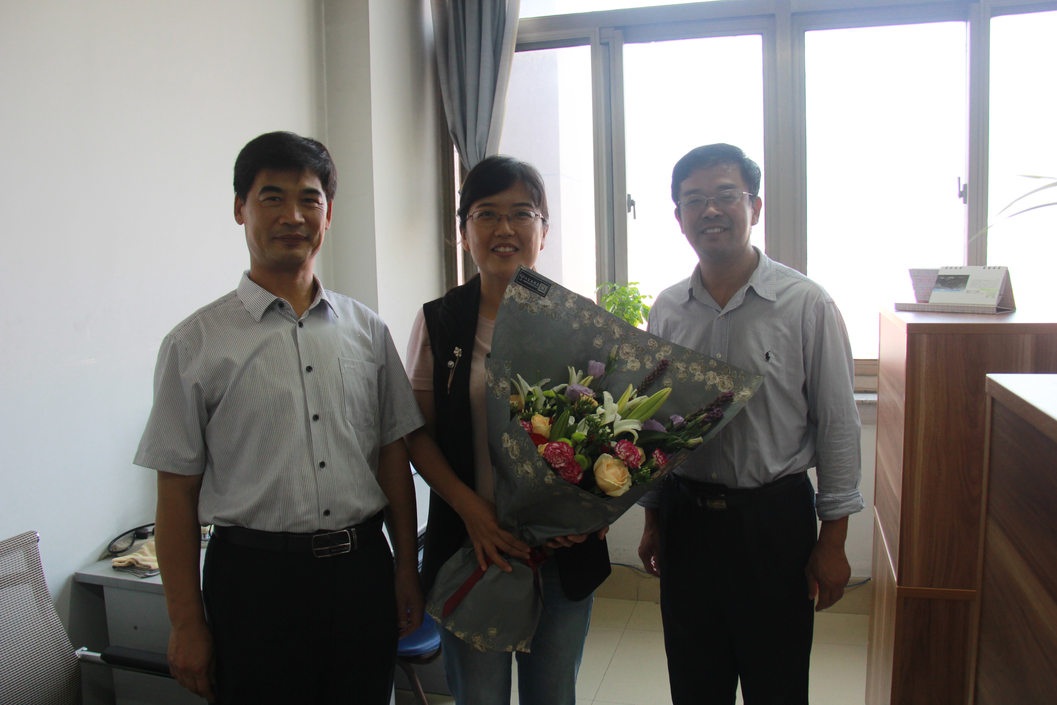 9月7日下午,在第33个教师节来临之际,副校长高东升来到信息学院数学系办公室,看望教师代表“青年岗位能手标兵”“国家自然科学基金青年科学基金项目”获得者孙莉老师。教务处处长胡继连、学院党委书记李广松、党委副书记李华陪同活动。