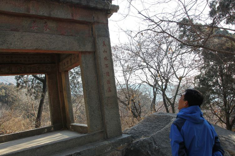 在终点“洗心亭“处,大家被亭内石刻所吸引。石刻为冯玉祥将军所题:“你忘了没有,东三省被日本侵占了去,有骨头的人应当去拼命夺回来。”