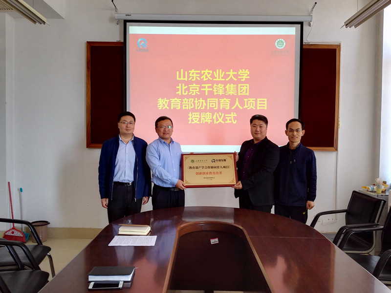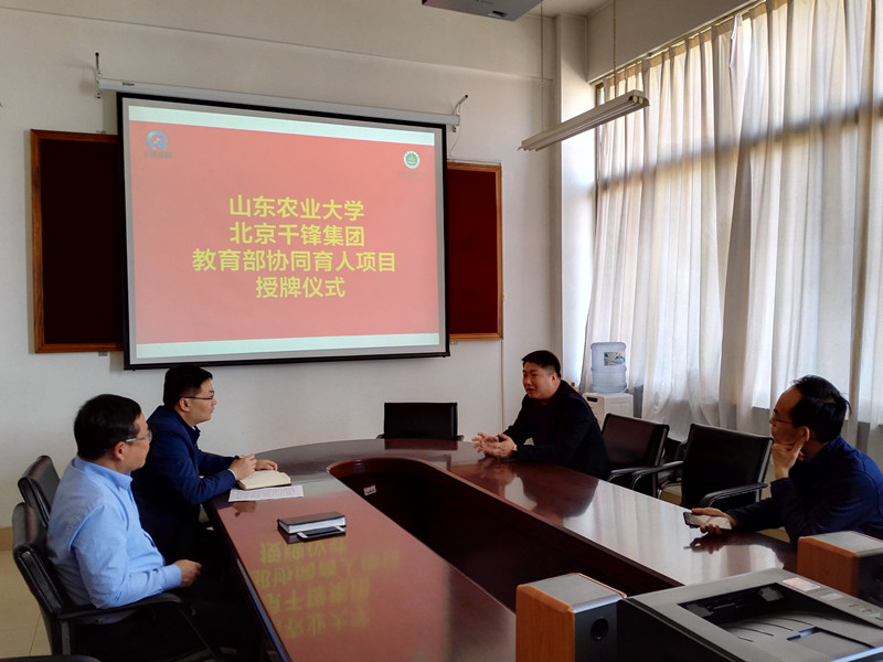 4月24日上午,信息学院在文理大楼1202举行山东农业大学北京千锋集团教育部产学合作协同育人项目授牌仪式。信息学院党委书记李广松,副院长王志军,计算机系主任葛平俱,千锋院校合作部大区经理徐志阳参加仪式。 仪式伊始,学院党委书记李广松感谢北京千锋集团多年来对本院学生培养的鼎力支持,希望双方能够以本项目为契机进行更加深入的合作,进一步提高学生培养质量。徐志阳经理简要介绍集团近几年在与高校协同育人项目上取得的进展和未来打算,表示将会进一步加强双方合作,为学生提供更多的优质教学资源,实现学校和集团双赢。