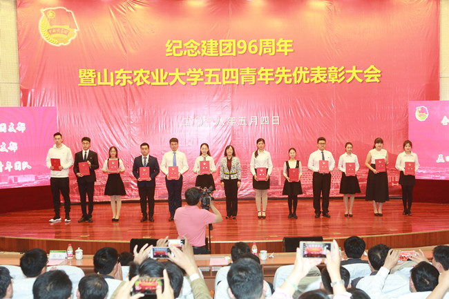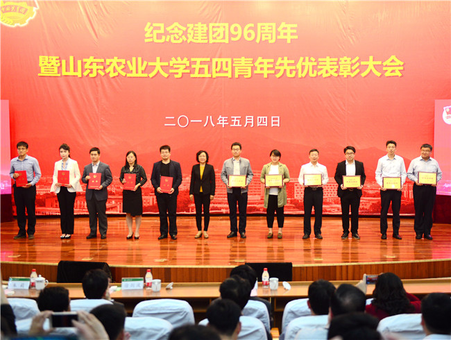 不忘初心跟党走,青春建功新时代。5月4日,学校在文理大楼报告厅举行纪念建团96周年暨山东农业大学五四青年先优表彰大会。学校领导徐剑波、朱莉、杨天梅、张然出席活动并为青年先优集体和个人颁奖。