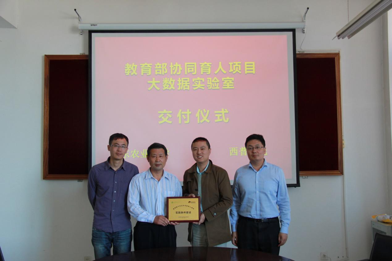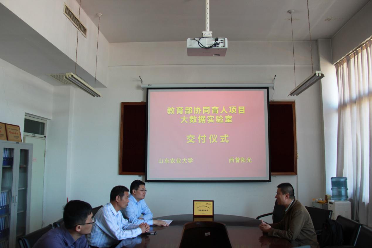 5月3日上午,信息学院在文理大楼1202举行山东农业大学与北京西普阳光教育科技股份有限公司的教育部产学合作协同育人项目——大数据实验室授牌仪式。信息学院院长李希灿,副院长王志军,计算机系副主任张亮,西普阳光教育山东区域院校合作总监李超参加仪式。信息学院在西普阳光教育支持下建立了信息安全基础教学实验室,目前已取得了良好的教学效果。在教育部产学合作协同育人项目-大数据实验室项目中,西普阳光教育赠送了价值50余万的大数据实验室教学软硬件环境供师生试用。