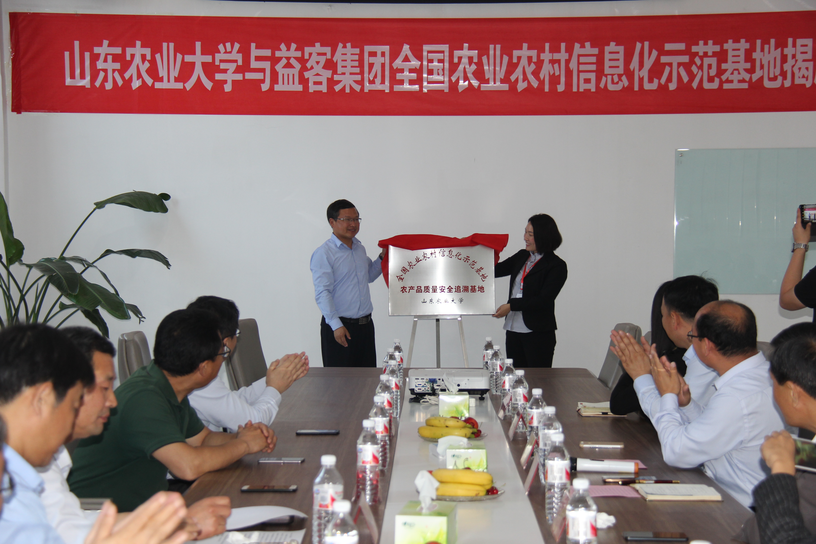 在益客集团新泰产业园,全体人员跟随讲解员参观考察了IOT大楼、产业园展厅、山东众客鸭线车间、调熟车间、羽绒车间等,其中,集团正在打造的禽养殖端的IBS溯源模块、工厂安全溯源数字系统(DTS)及流通端溯源(CRM)给大家留下了深刻的印象。随后,双方举行山东农业大学全国农业农村信息化示范基地的授牌仪式,学院党委书记李广松与益客集团鲁中运营中心总经理王爱峰共同揭牌,开启了双方深化合作的新篇章。据悉,益客集团成立于2004年10月,是中国领先的、成长速度最快的大型农牧食品集团之一,中国最大的禽肉供应企业之一,是集品种繁育、种禽(种鸡、种鸭)养殖与孵化、商品禽(肉鸡、肉鸭)养殖技术服务、饲料研发及生产、禽肉屠宰与加工、调理品、熟食商业连锁、农业物联网、行业大数据与分析、产业投资为一体的全产业链生态型农牧食品企业。