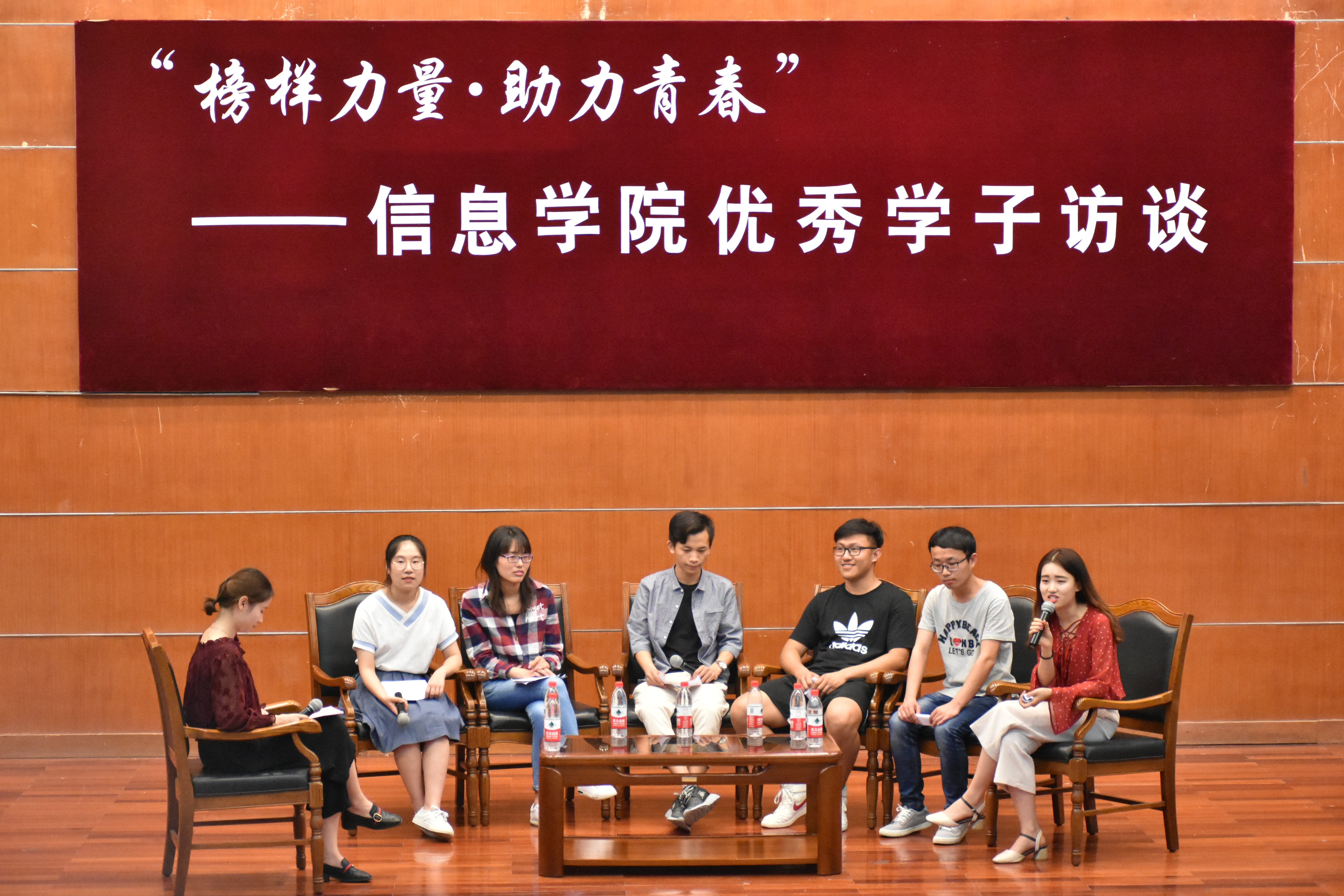 5月27日晚上,信息学院于文理大楼学术报告厅举办优秀学子交流会。学院邀请2014级学生会文艺部部长赵雅楠等6位优秀学子与2015级学生分享考研、就业及出国留学经验,畅谈学习感悟。