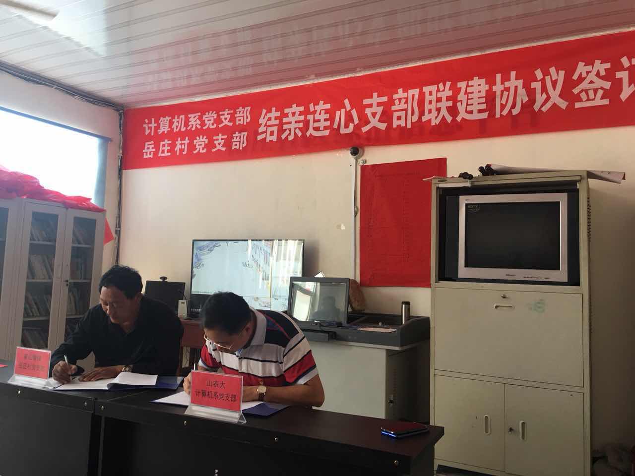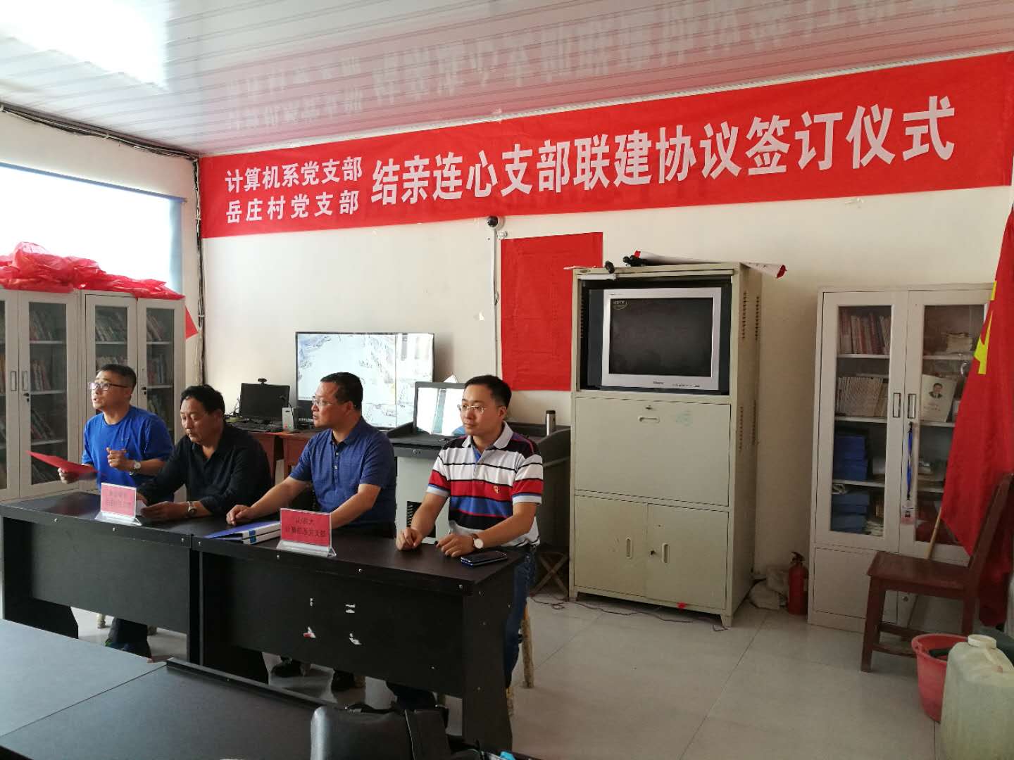 为进一步贯彻落实党的十九大精神,深入推进“大学习、大调研、大改进”工作,5月26日,信息学院计算机科学与技术系党支部与沂水县黄山铺镇岳庄村党支部签订 “结亲连心,支部联建”协议。学院党委书记李广松、计算机系、计算机实验教学中心党员及教师代表参加了本次活动。