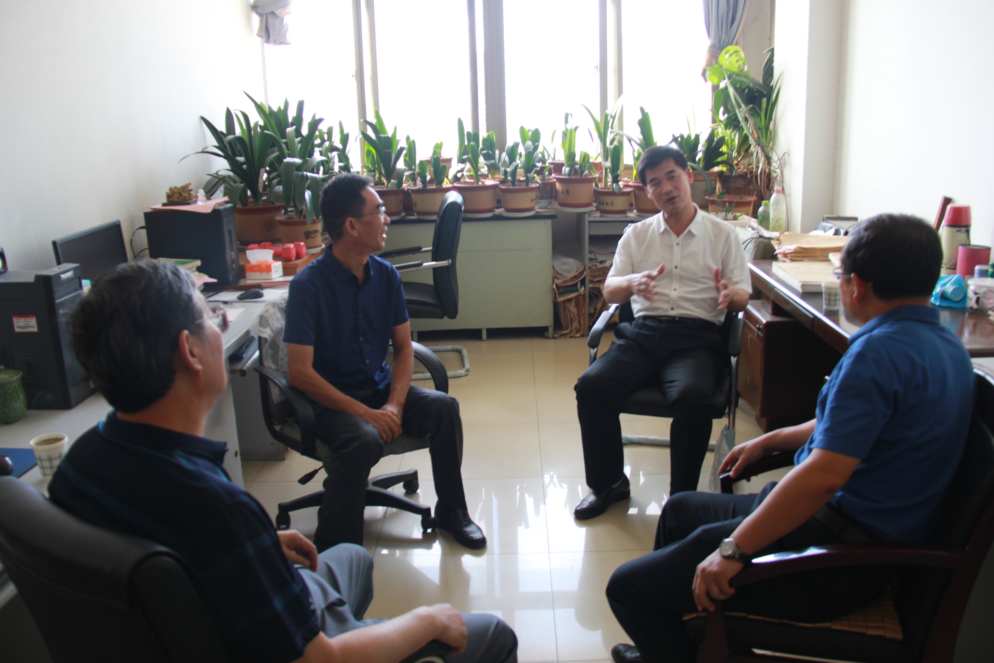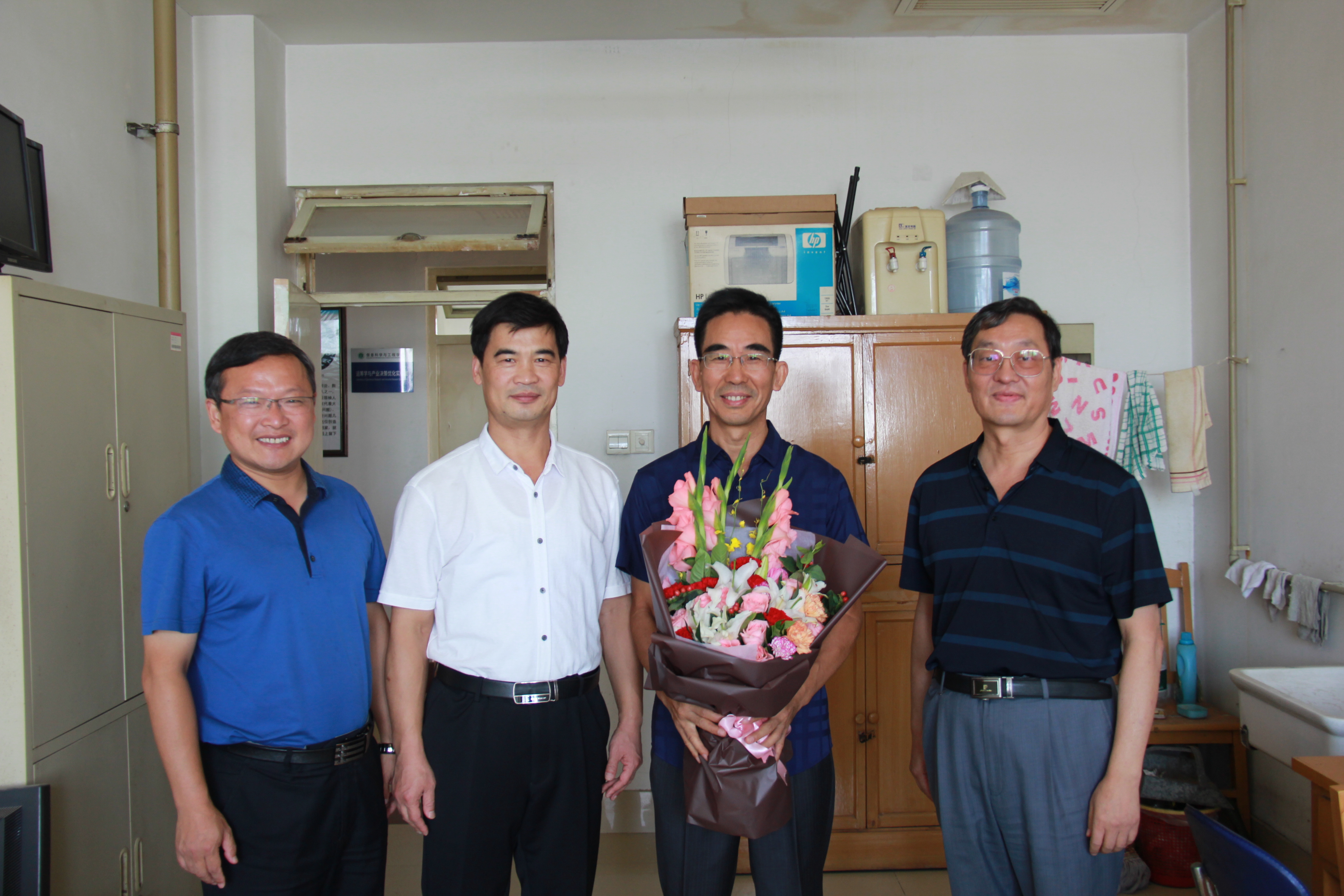 9月7日上午,在第34个教师节来临之际,副校长高东升来到信息学院数学系办公室,看望教师代表“学生心目中的优秀教师”获得者王希超老师。教务处处长张春庆、学院党委书记李广松陪同活动。