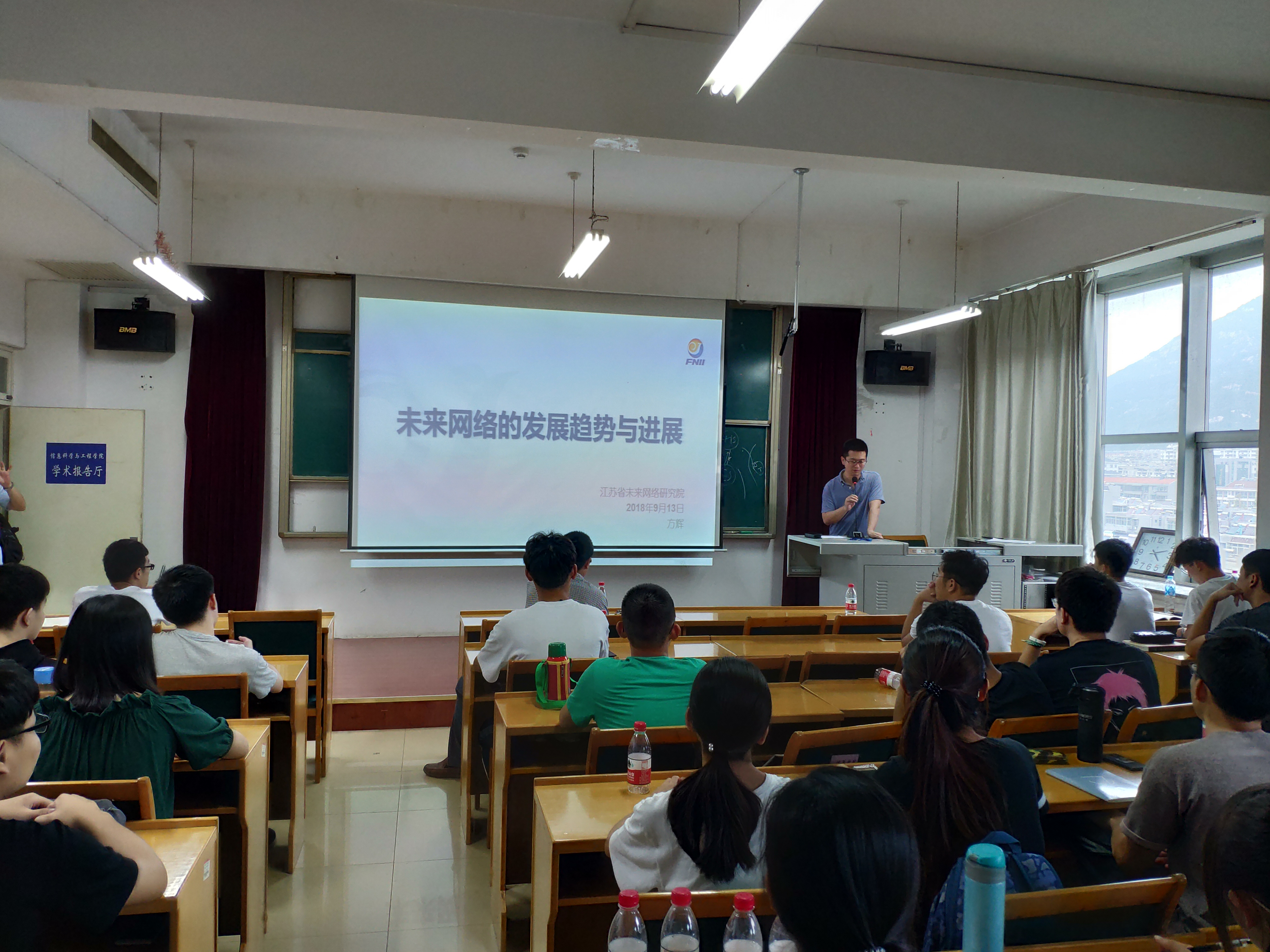 9月13日下午,信息学院于北校区文理大楼804举办网络专业报告会。会议邀请了10级网络工程专业毕业生现任江苏省未来网络研究院方辉老师担任主讲人,信息学院网络工程专业主任武装老师、16级网络工程专业全体学生参加此次报告会。