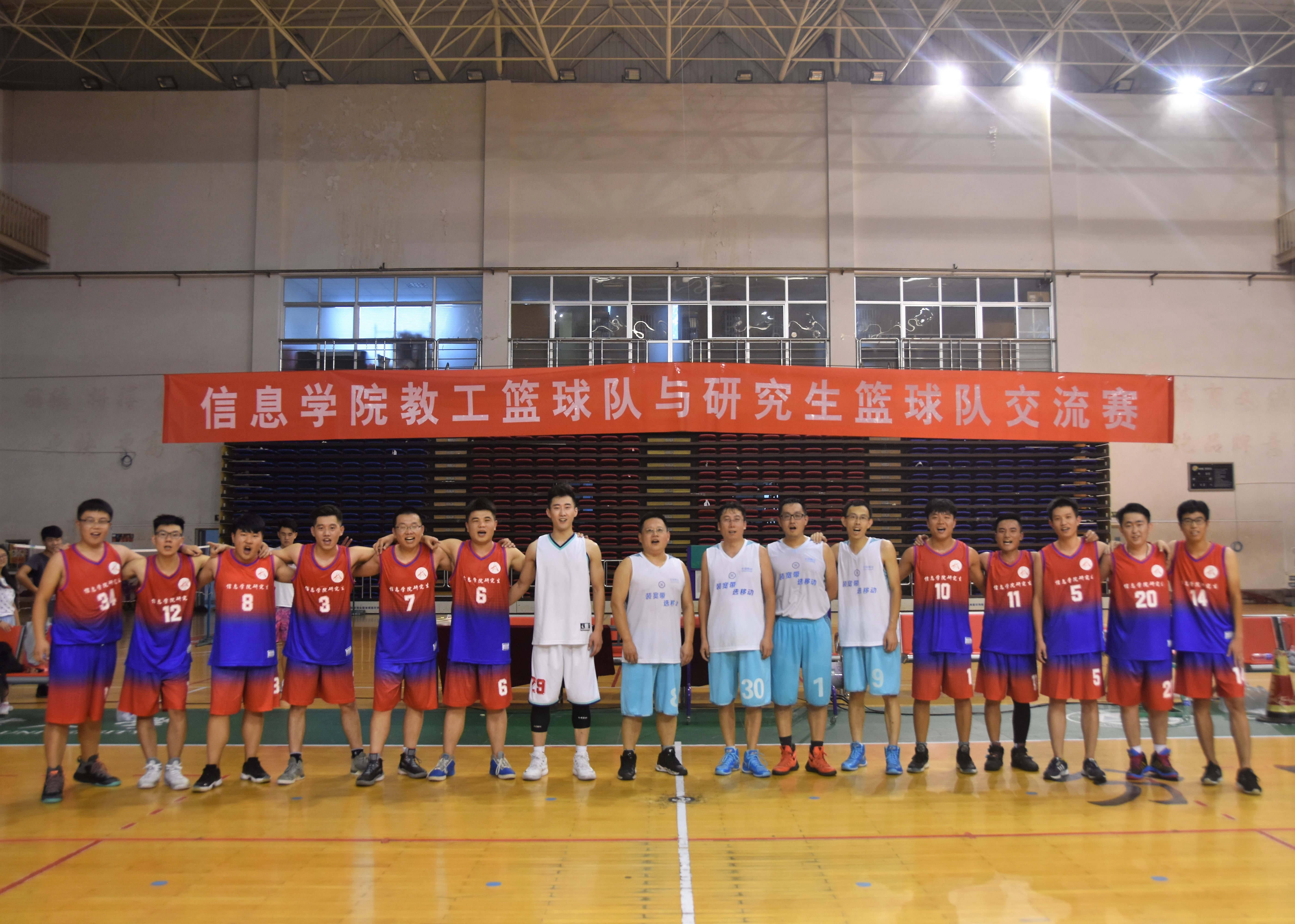 9月15日下午,信息学院于北校区体育馆篮球场成功举办教职工篮球队与研究生篮球队交流赛。