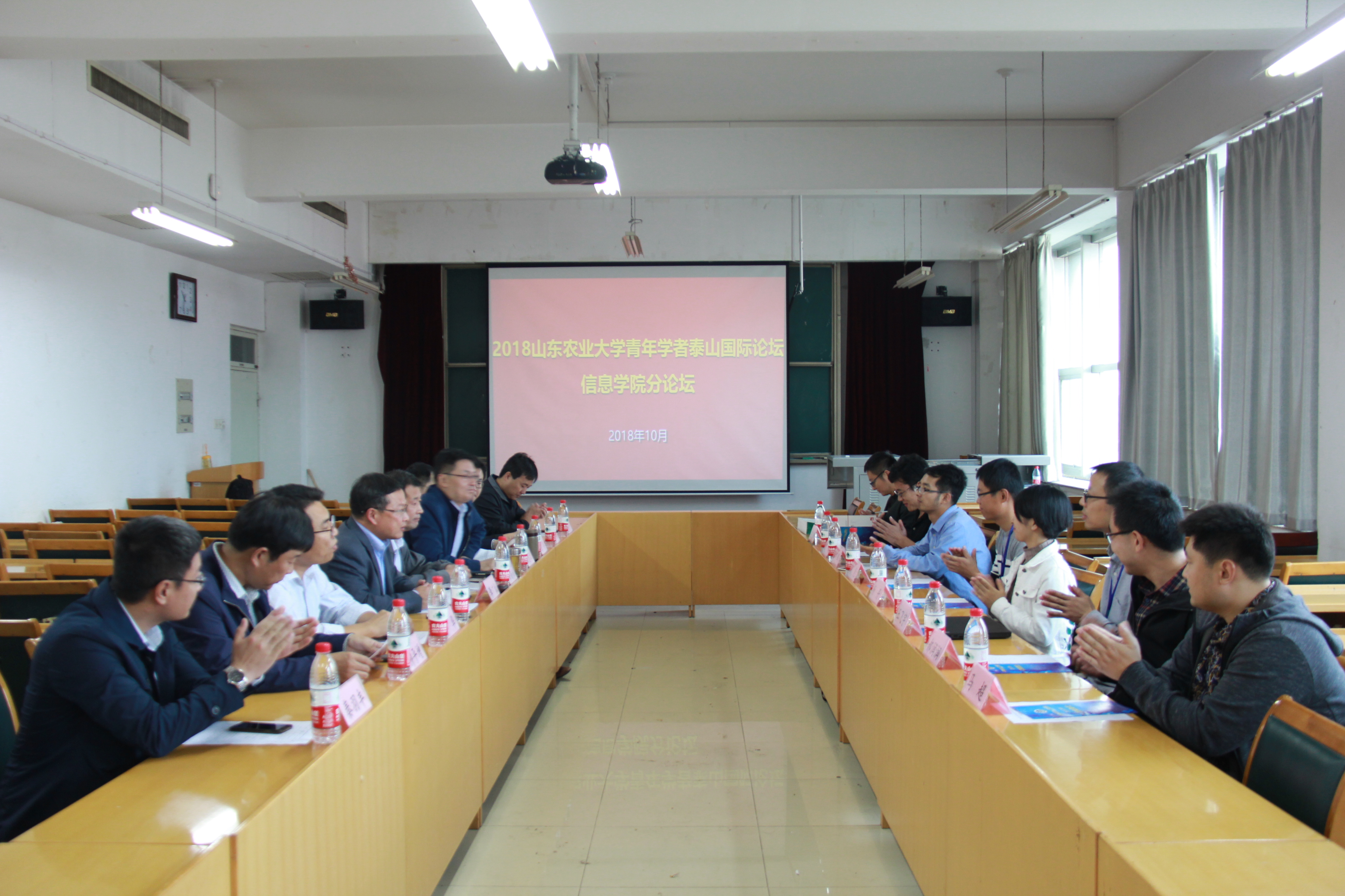 10月13日下午,按照山东农业大学青年学者泰山国际论坛的日程安排,来自海内外的8名优秀青年学者汇聚在文理大楼804报告厅,参加2018年山东农业大学青年学者泰山国际论坛——信息学院分论坛,学院班子成员、相关专业系主任出席参加。座谈会由学院党委书记李广松主持。