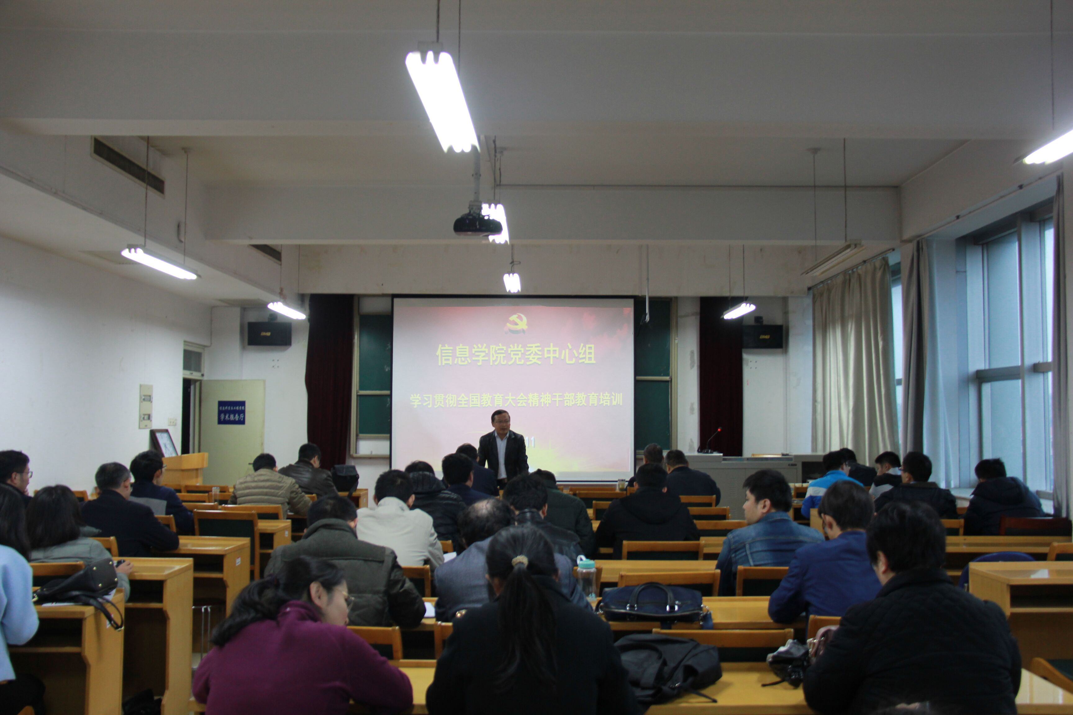 2018年11月6日,信息学院学习贯彻全国教育大会精神干部教育培训工作启动仪式在文理大楼804举行。学院党委委员、班子成员、各教工党支部书记、各系主任、全体辅导员参加。学院党委书记李广松主持会议。
