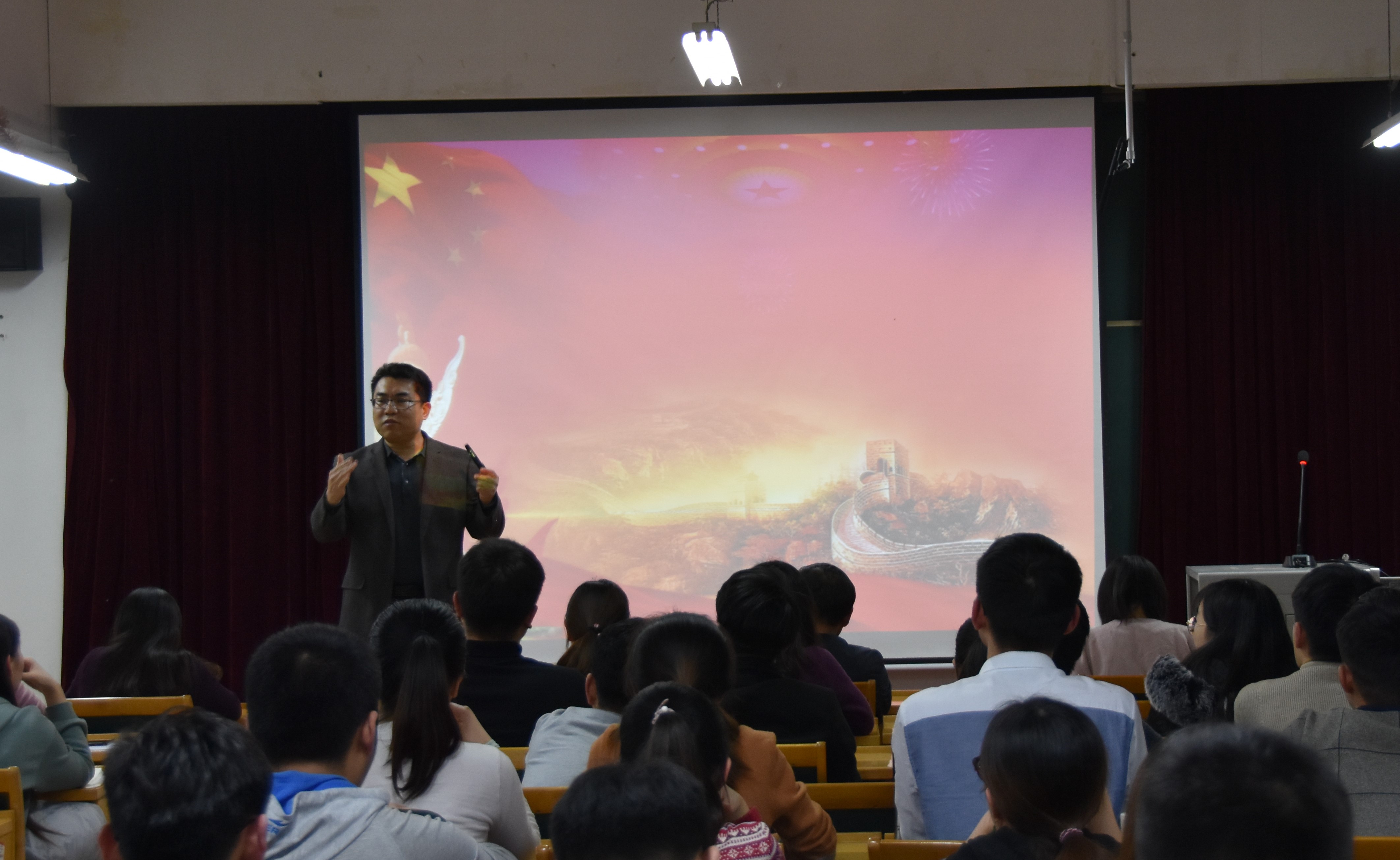 会后,李华书记做了题为《马克思主义中国化之路》的专题讲座,从马克思、马克思主义、马克思主义中国化三个方面向在座同学分析马克思主义的命运早已同中国共产党的命运、中国人民的命运、中华民族的命运紧紧连在一起,青年学生应不断完善自己的世界观、人生观、价值观,把马克思主义贯彻到人生理想中,做共产主义的坚定信仰者。同时,李华指出,同学们在最好的年华遇到最美的时代,一定要勇于担起党和人民的重托,不断奋斗,用实际行动争做一名合格的共产党员。