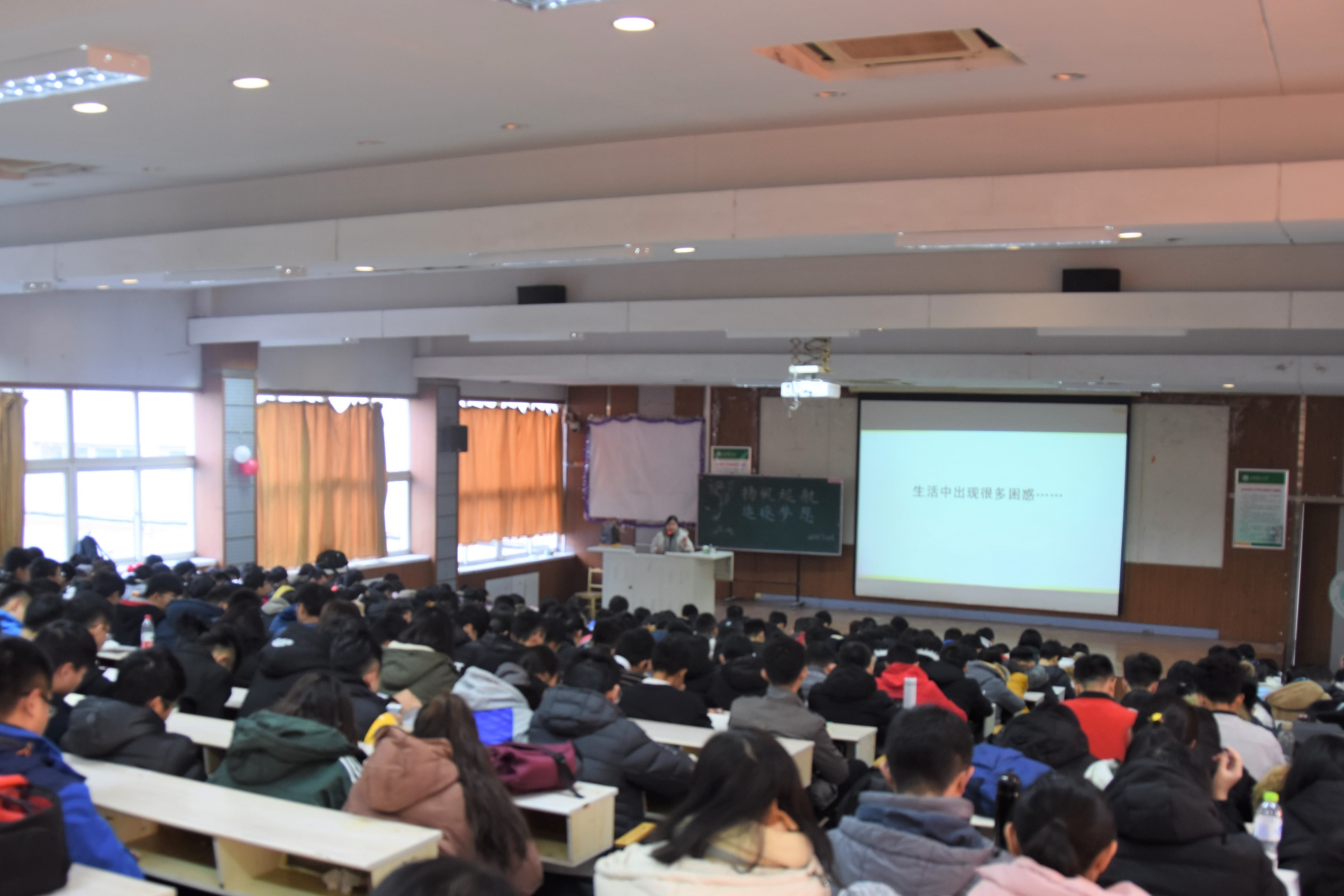 近期,信息学院于东校区成功组织大学新生适应性心理讲座。本次讲座由学工处大学生心理教育中心尹红霞、贺荣珍老师主讲,18级全体同学参加。