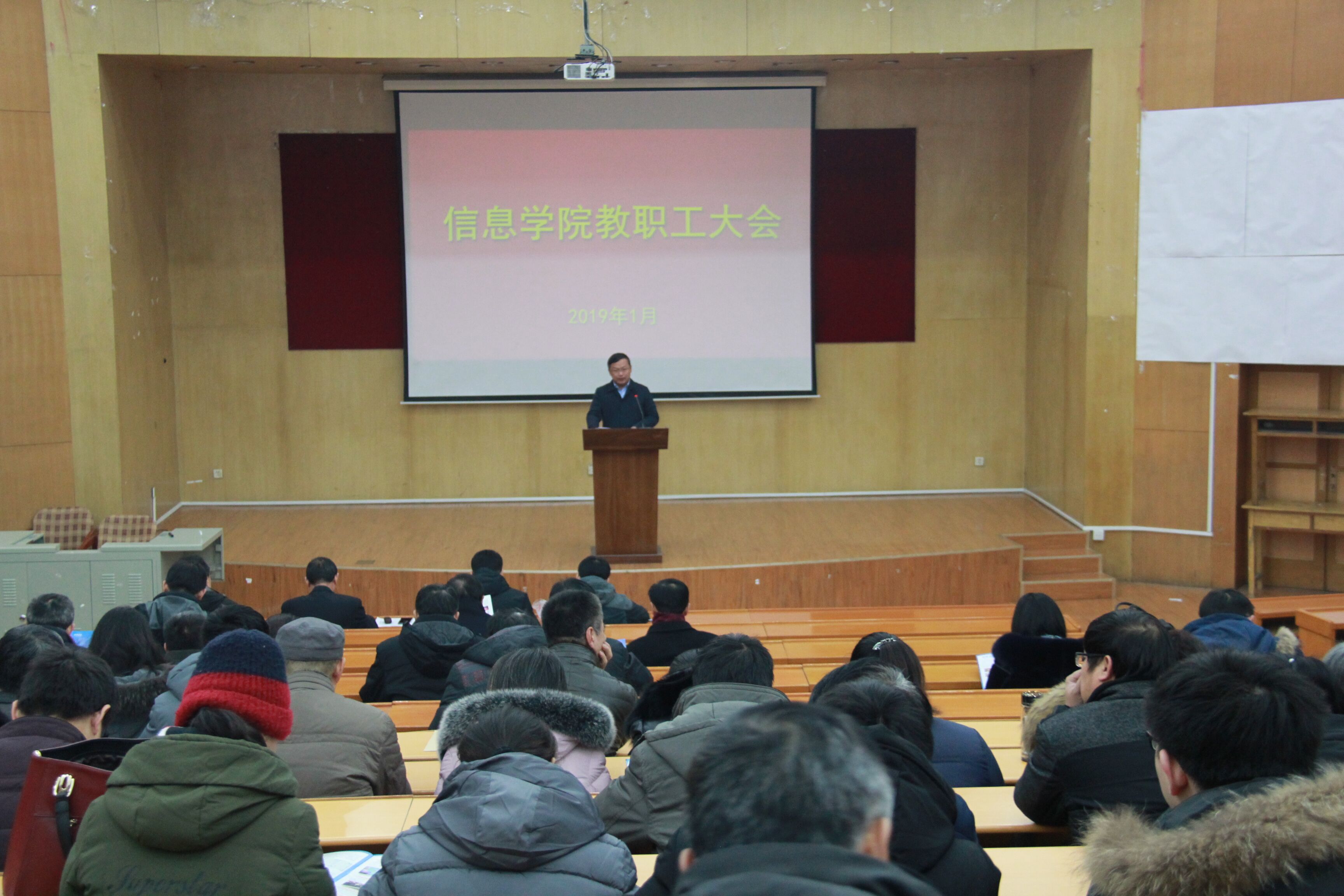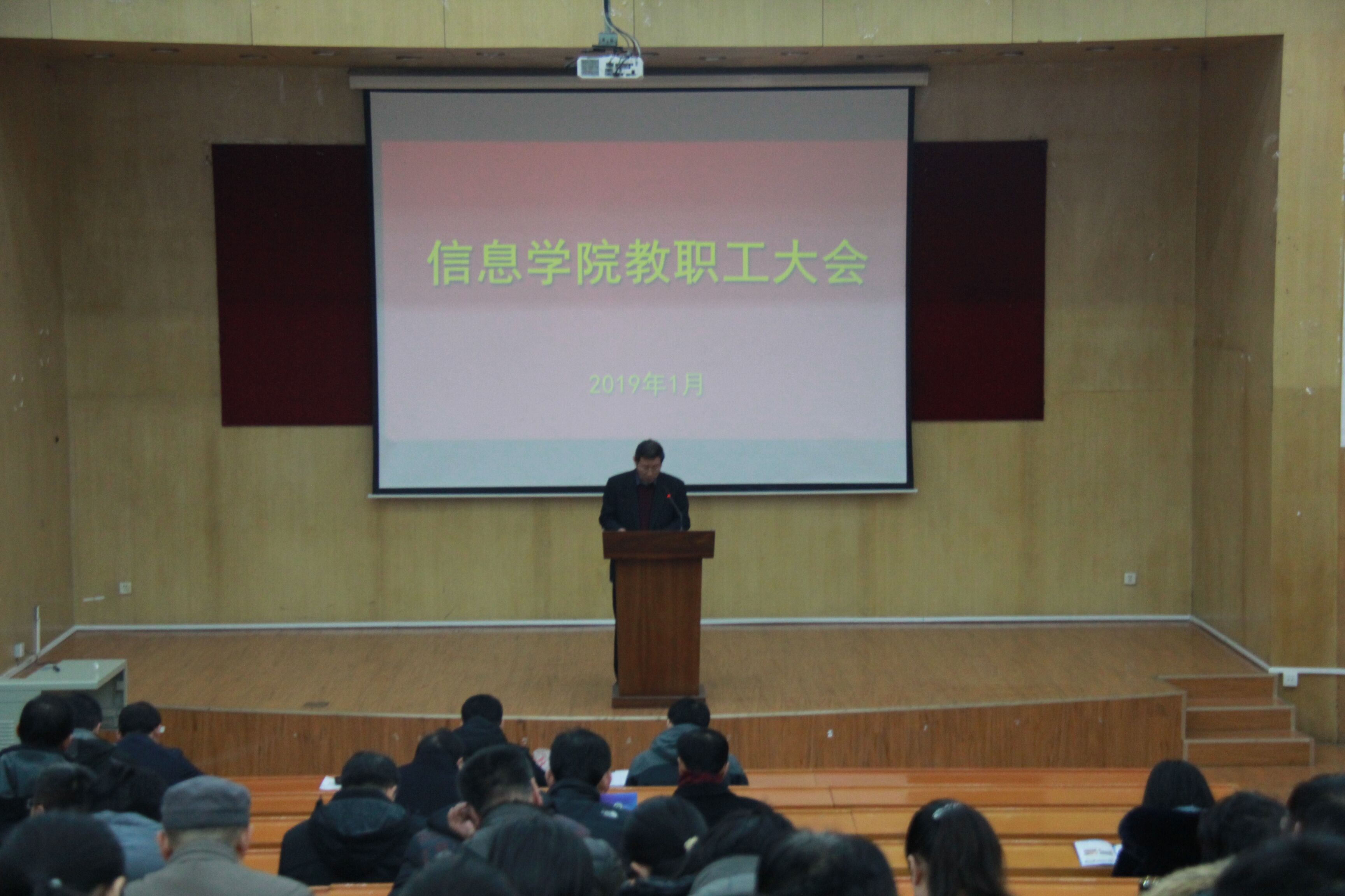 最后,李广松书记指出,2018年作为贯彻党的十九大精神的开局之年,学院各项工作在全体教职工的共同努力下,取得显著成绩。2019年,学院领导班子将继续团结带领全院师生员工,不忘初心,砥砺前行,用改革推动发展,用发展凝聚人心,努力营造“信息学院一家亲,同心共筑信息梦”的干事创业氛围。