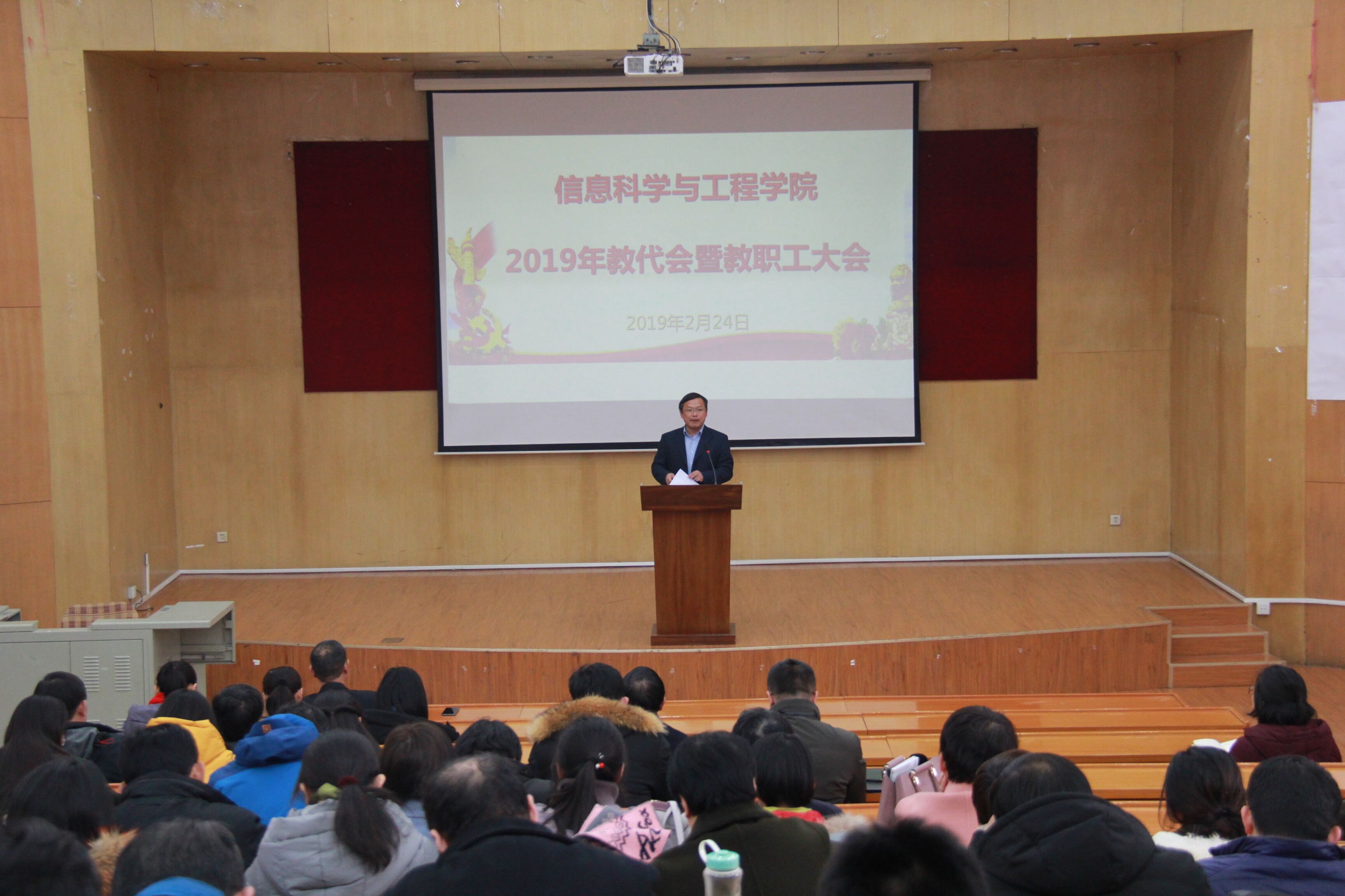 2月25日上午,信息学院2019年教代会暨新学期教职工大会在北校区教学楼5N-124召开,学院党委书记李广松主持会议。会议传达学校双代会和学校党委中心组暨处级干部研讨班有关会议精神,安排部署新学期有关工作。