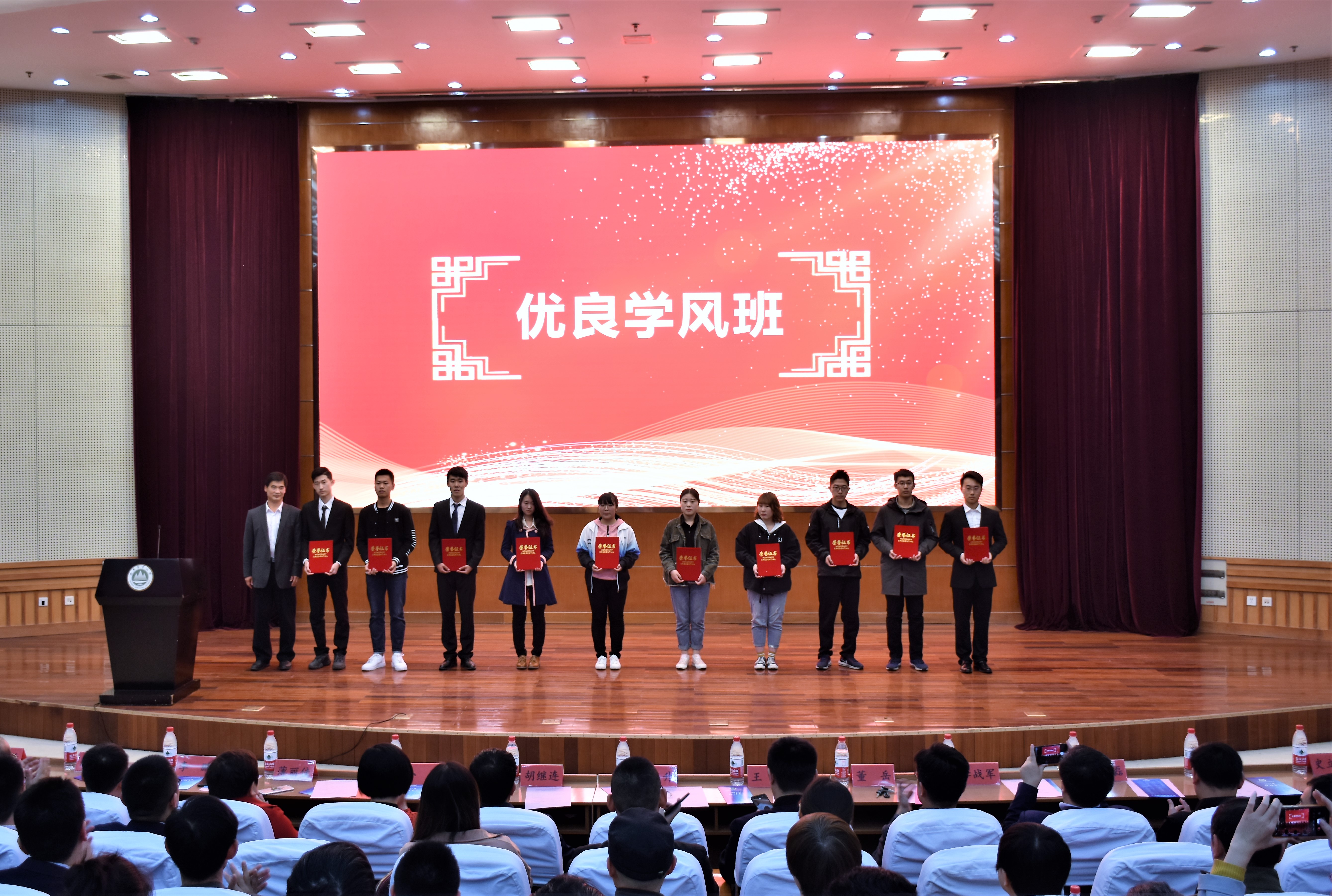会议表彰了2018年度学风建设先进集体和个人,授予房曙光等82名同学“学习标兵”称号、戴瑞芬等15名同学“优秀团支部书记”称号、吴可等15名同学“好班长”称号、北校区6号楼227宿舍等44个宿舍“优良学风宿舍”称号、2017级数学与应用数学1班等17个班级“优良学风班”称号。