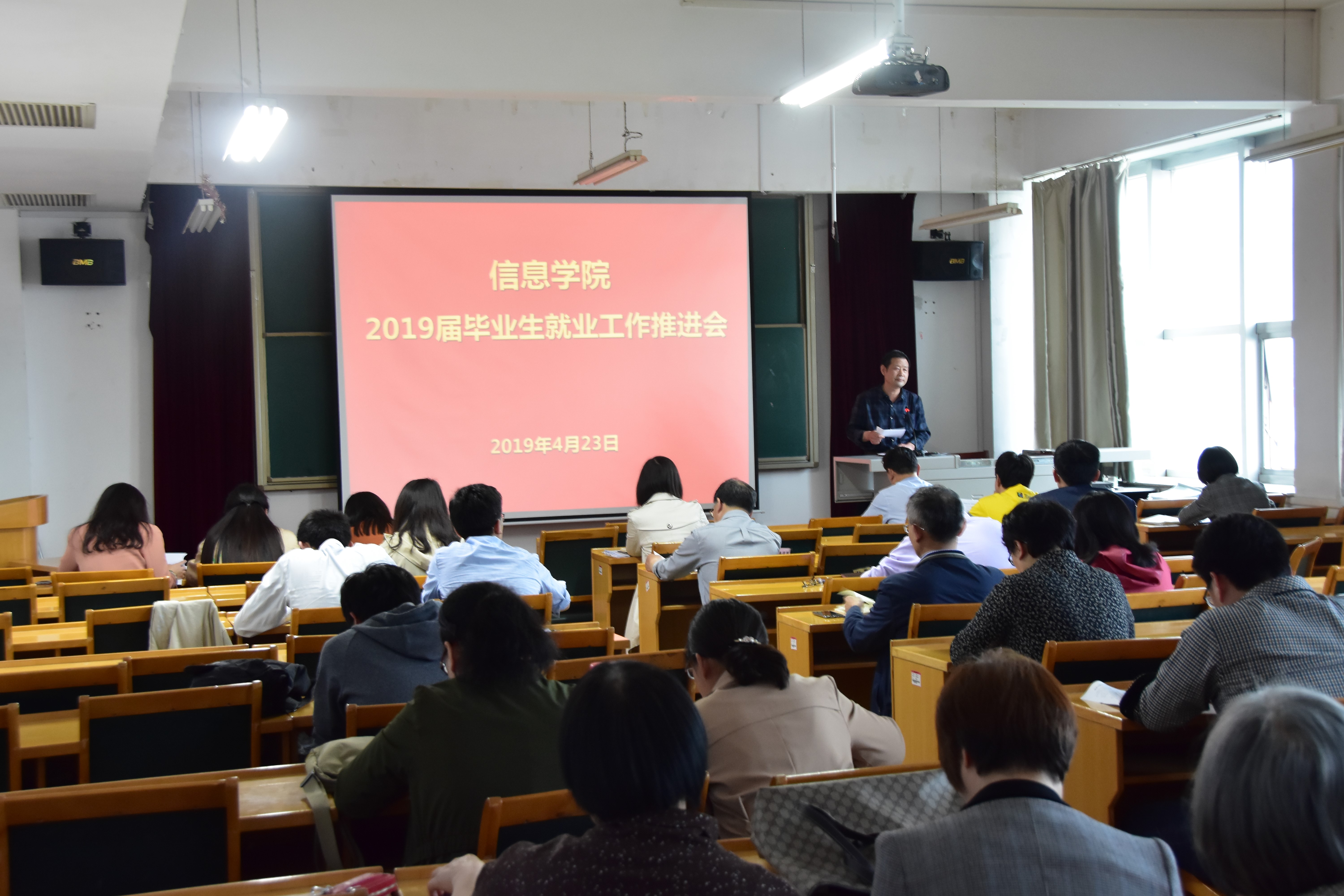 4月23日下午,信息学院于北校区文理大楼804成功举办2019届毕业生就业工作推进会,学院领导班子成员、就业指导老师及团委老师参加会议。