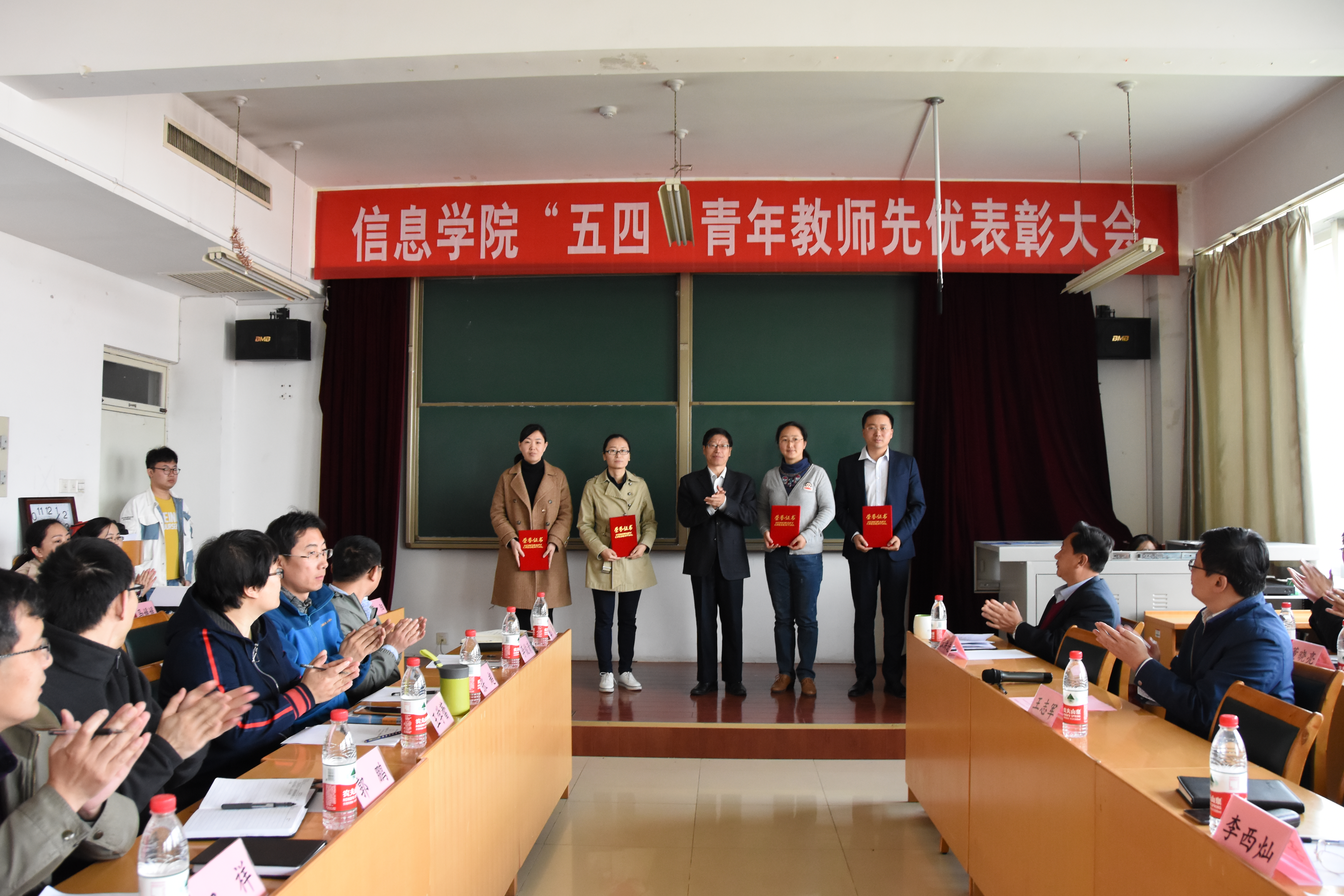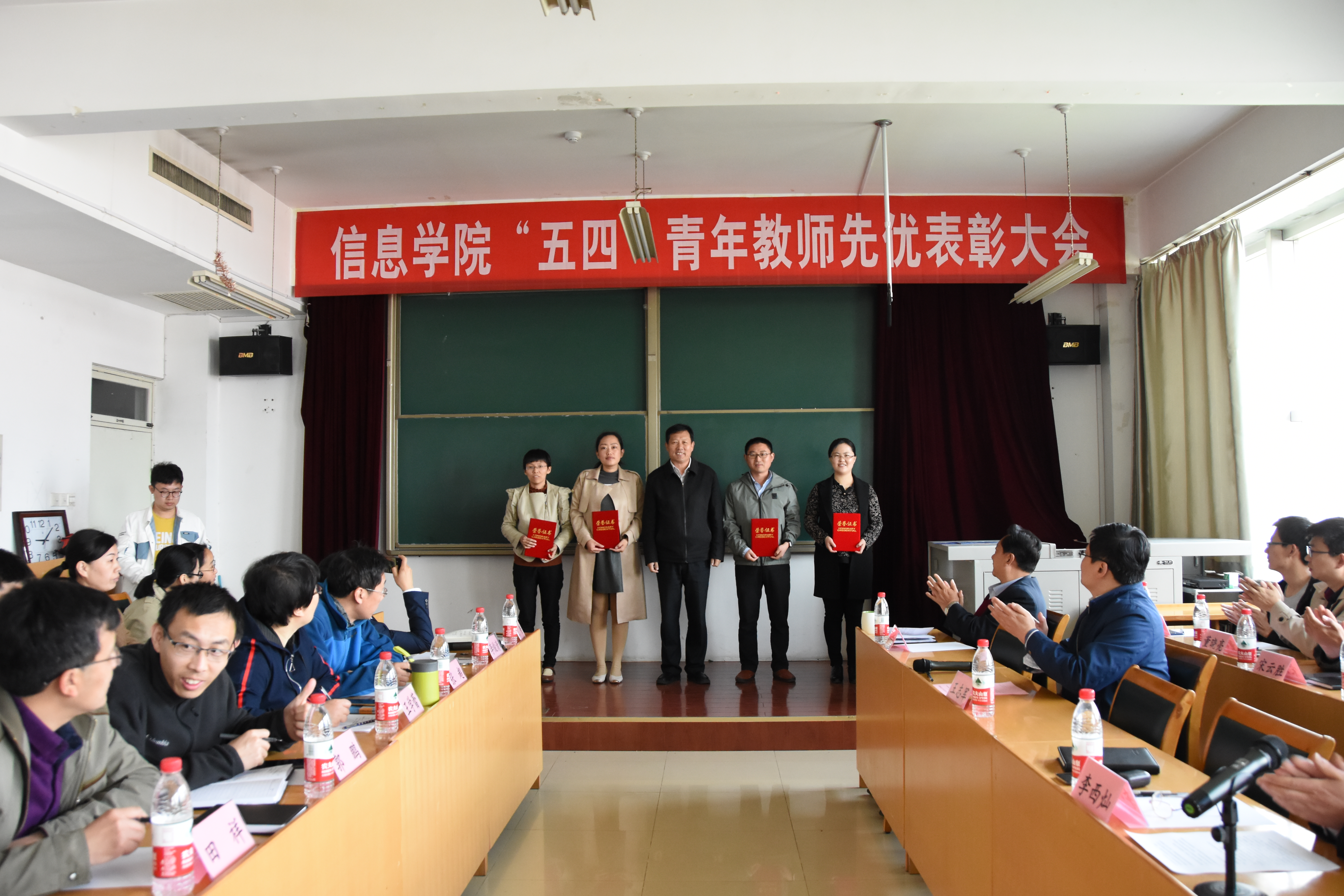 4月28日,信息学院在文理大楼804举办“五四”青年教师先优表彰大会。教务处处长谢胜利、发展规划处副处长毛志泉、农学院院长孔令让、生科学院副院长赵翔宇出席活动并为获奖教师颁奖。会议由院长李西灿主持,学院班子成员、系主任、全体青年教师等参加会议。