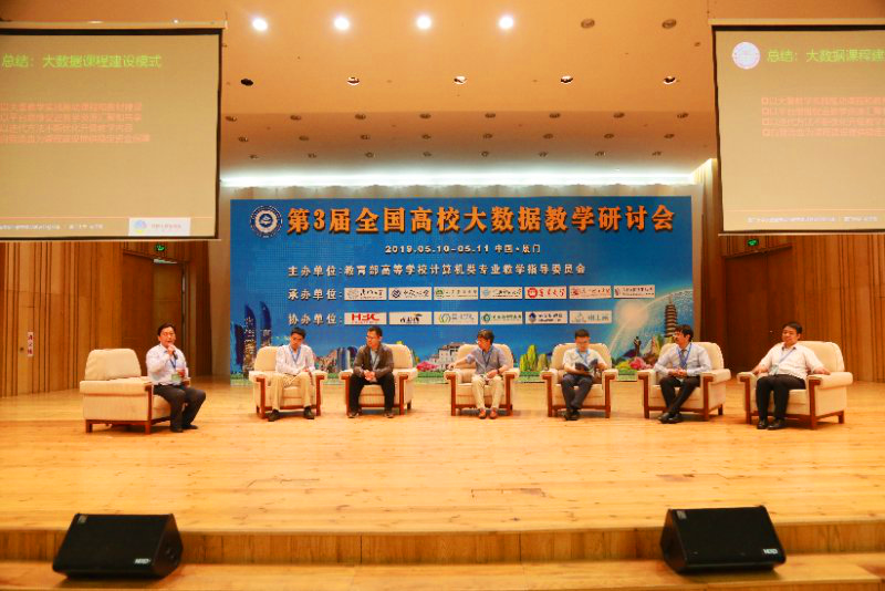 2019年5月10日至11日,第3届全国高校大数据教学研讨会在厦门大学科艺中心音乐厅隆重举行。本届研讨会由教育部高等学校计算机类专业教育指导委员会主办,山东农业大学、厦门大学、中南大学等联合承办,旨在搭建专业的大数据教学交流平台,汇聚全国高校大数据教学精英力量,共同探讨大数据专业和课程体系建设,为加快推进全国高校大数据教学发展贡献力量。信息科学与工程学院副院长张洪进主持专家报告及专家座谈会;数据科学与大数据技术专业主任张亮教授、牟少敏教授、系副主任李俊清副教授与来自全国300多所院校400余名教师参加了本次研讨会。